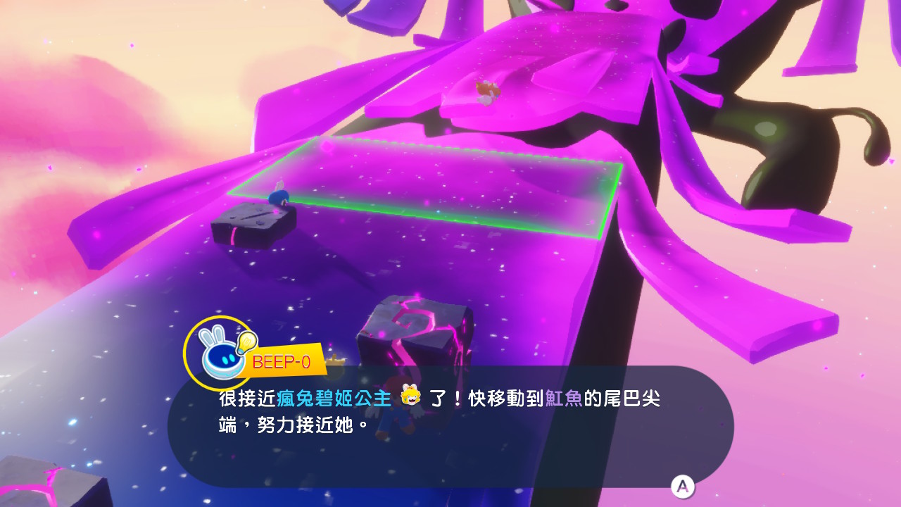 在 Beep-Q 的幫助下,瑪利歐將爬上怪物身上展開拯救瘋兔碧姬公主的挑戰(真碧姬逃過一劫啦!!)