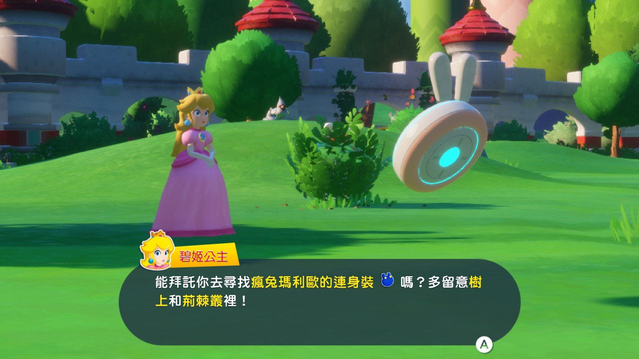 玩家的第一個主線任務就是幫瘋兔瑪利歐找回被偷走的連身裝(可惜沒機會看到瘋兔瑪利歐的裸體秀!?)