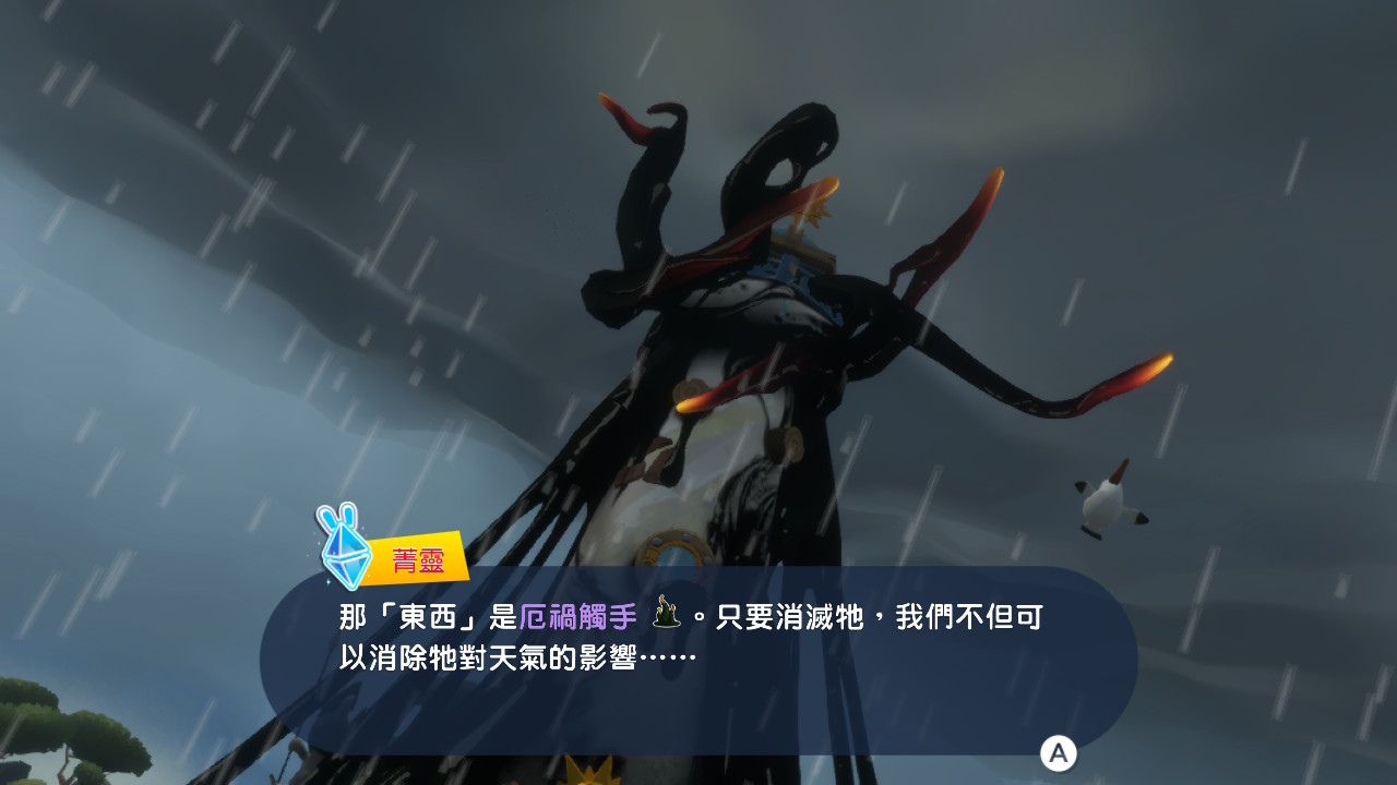 在成功完成系統教學打敗巨大魟魚怪物後,遊戲中的大 Boss 咒煞正式登場,並為玩家們帶來最後一波的戰鬥教學操作。在最後這波的戰鬥教學中,除了有每個角色身上裝備的星可夥伴的支援使用外,還有各角色的專屬特殊技能使用教學(如瘋兔碧姬公主的技能為全體範圍補血),玩家可以透過這波的戰鬥實際操作,來了解各角色技能的特色與使用操作。