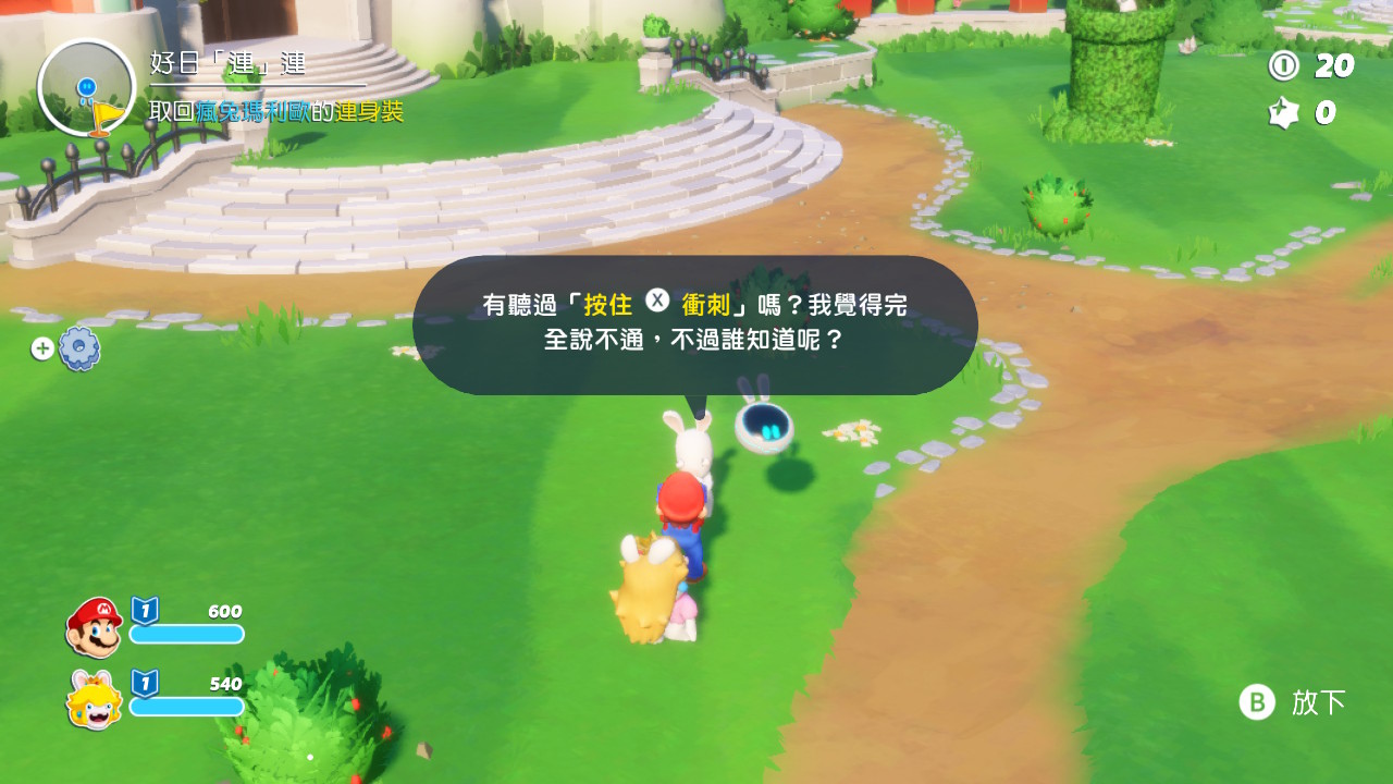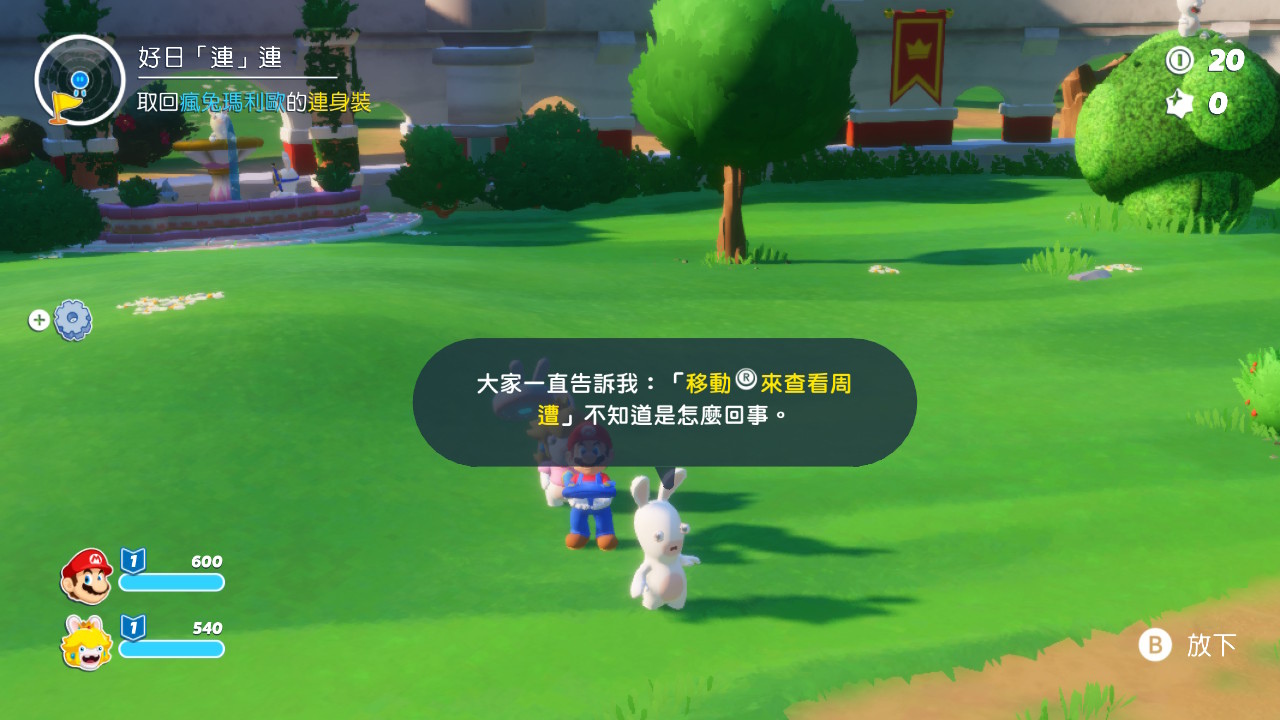 找回連身裝後就可以看到瘋兔瑪利歐正式亮相啦