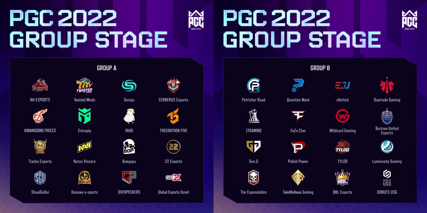 PGC 2022 參賽隊伍暨小組賽分組名單