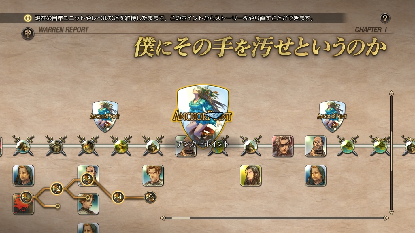此外,本作還採用了多線故事 W.O.R.L.D.(Ways Of Reordering Life's Destiny)系統,玩家將多次面臨重大選擇,並且之後的故事也將隨著選擇而發生巨大的變化。但由於戰術模擬 RPG 這一遊戲類型的特質所限,若想要體驗故事的所有內容,將需要花費大量的遊戲時間。滿足條件即可使用的「命運之輪 W.O.R.L.D.」可以讓玩家回到故事中特定的時間點,並可以選擇與迄今為止所走之路不同的路線。