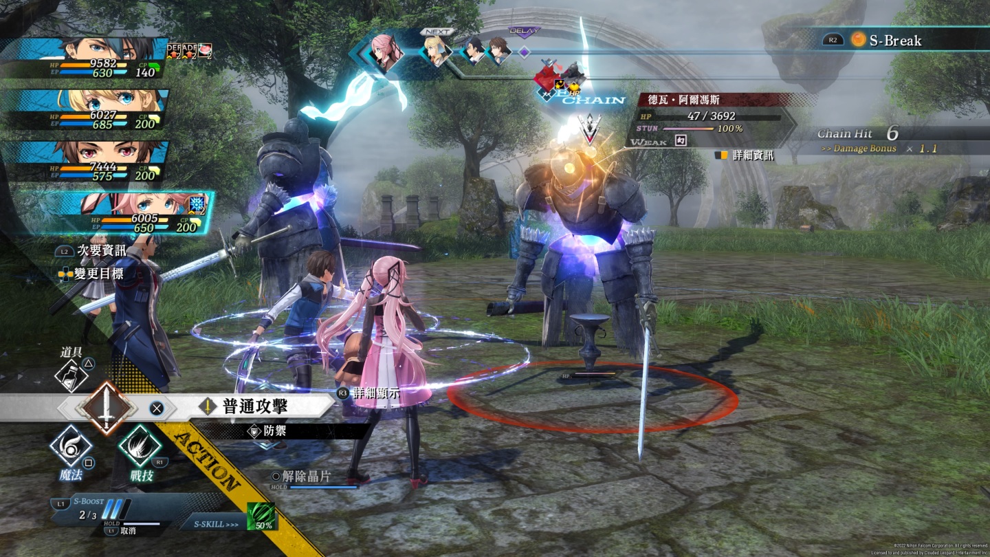 延續原野戰鬥流程的最後一段「擊暈」,當敵人暈眩時開局進入指令戰鬥依然是暈眩狀態,利用原有的「S 增幅」觸發,能夠與隊友進行「EX 連鎖」的攻擊,進階造成範圍傷害。不過也拔掉了《黎》可連續 S 技的設定,更加入了敵人可以利用 S 技插入戰鬥順序的手段。為指令戰鬥增加了策略與挑戰性,另外在指令戰鬥方面還加入了一些驚喜給玩家,預示了往後戰鬥的變化度。