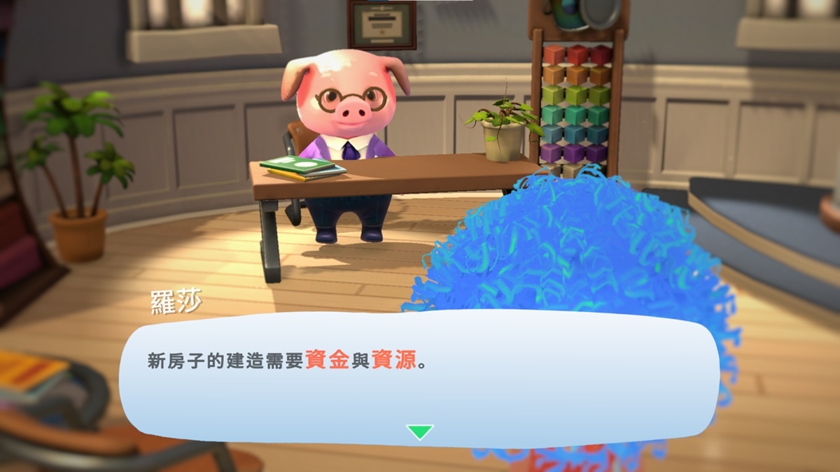 經營廣為人知的房地產公司的豬女士,她有一些可靠的門路,可以協助玩家建設小鎮未來的房產。您可以在她的店舖購買不同檔次的房屋,只要提供相關材料和金錢,她便會為新建築申請許可。如果不滿意房子的外觀,還可以安排改裝屋頂和牆壁!