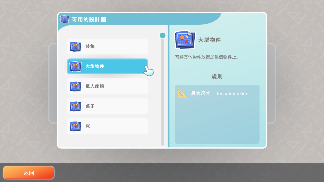 玩家能從木工坊的紗莉購入設計圖、或者透過幫助鄰居隨機獲得圖樣。除了各種指定物品或建築樣板,例如小橋、燈、座椅、床等,還有大型物件等讓玩家自由揮灑創意的設計圖。圖中會顯示該項設計的最大和最小尺寸,只要在尺寸範圍內,都能任意創作獨一無二的物件!改良之前的設計,直接進入設計圖進行更改。