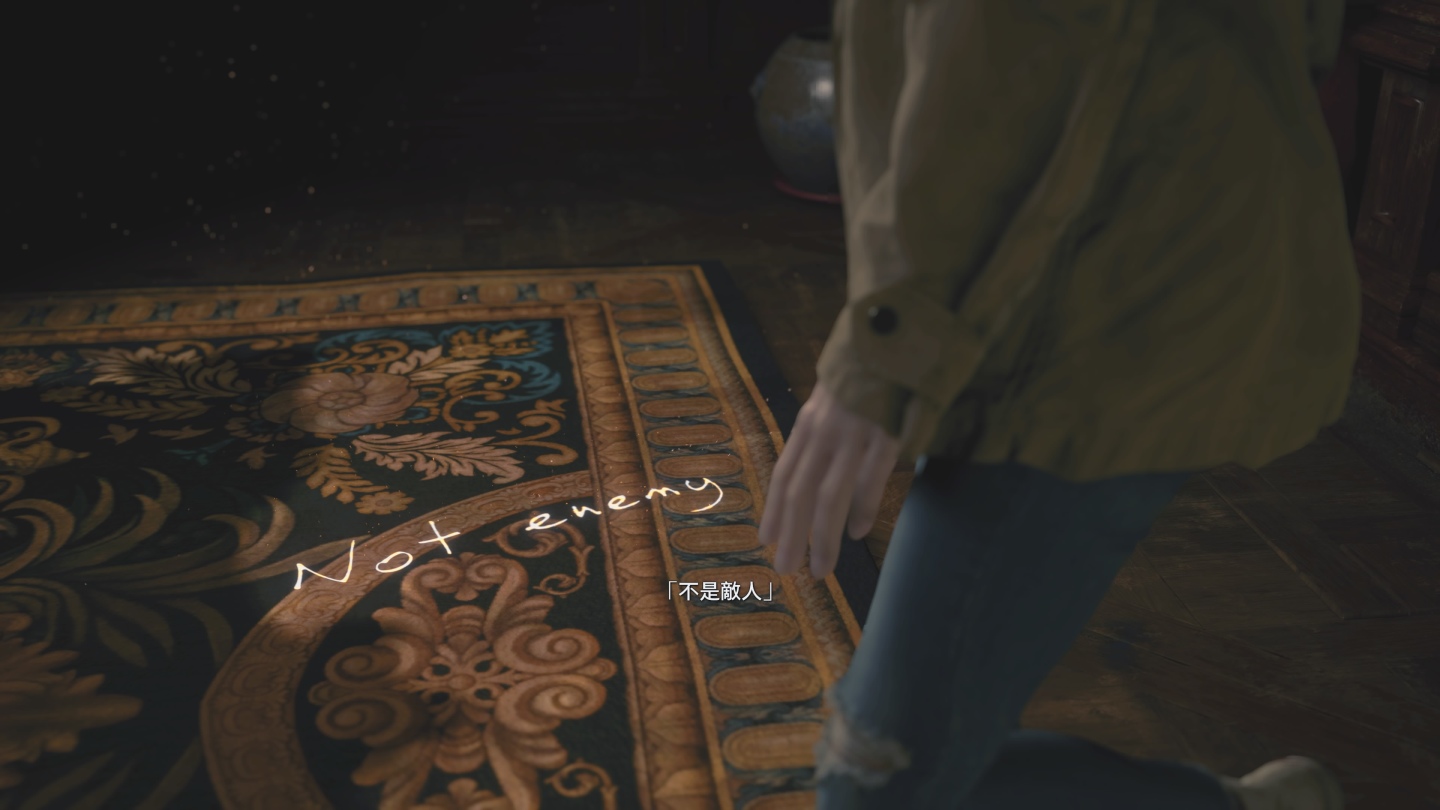 「溫特斯擴充包」內容帶來的第三人稱視角也替敘事運鏡帶來新感受,第一人稱暈眩的玩家已有解方。但可惜的是「村莊」在第三人稱視角只支援在玩家操作時,只要進入照相模式、過場動畫還是會強制回歸到第一人稱,而且不管怎麼橋角度怎樣都不讓玩家看到伊森的尊容全貌,成為全系列最神秘的主角。