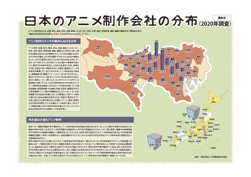 日本動畫協會自 2009 年起對動畫產業進行調查統計、分析,並將每年的結果於國內外廣發。2021 年度基於動畫製作公司的問卷調查結果顯示,廣義來說的動畫產業市場相較前一個年度成長 113.3%,總額為 2 兆 7422 億日圓,居然還更新了過去的最高產值。主要的原因是包括串流、轉播等數位影音市場比前一年成長 165.9%(1543 億日圓)、商品化收益比前一年成長 114%(6631 億日圓)、日本以外的海外市場則成長 106%(13134 億日圓);而動畫製作第一線人員表示「接到的案件持續增長」、「企劃數量遠大於製作單位的狀況依舊持續,製作費也有增加的傾向。確實可以看到收益情況改善、提昇的可能性」,同時也反映了製作現場人手不足、製作單位的數量已經不足以支撐作品企劃產出數量的高風險情況。