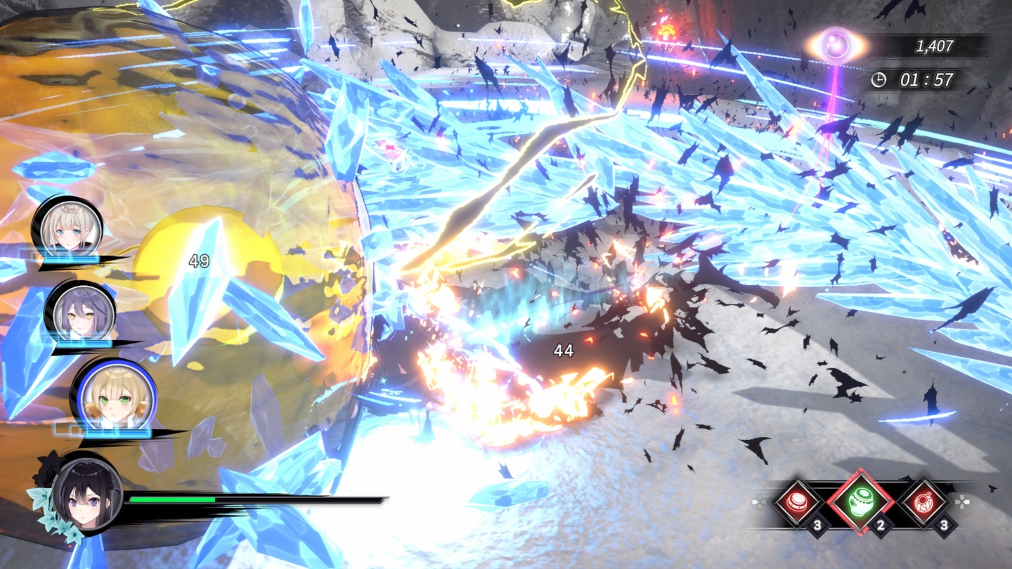 但也因為這樣的設計,主角初始能力相當貧弱,無法受身、不會招架,加上主線關卡在普通難度下,怪物的攻擊雖然單調、但是傷害高與攻擊欲望高,倒地時主角更會被追擊到死,讓玩家的容錯率降低許多,且因劇情關係,玩家還得先跟護影們一一會合,導致到了中後期才有比較完整的能力可以使用,且三位護影的實戰與解鎖技能差距相當大,可以先看一下相簿決定要增進親密度的主要目標。