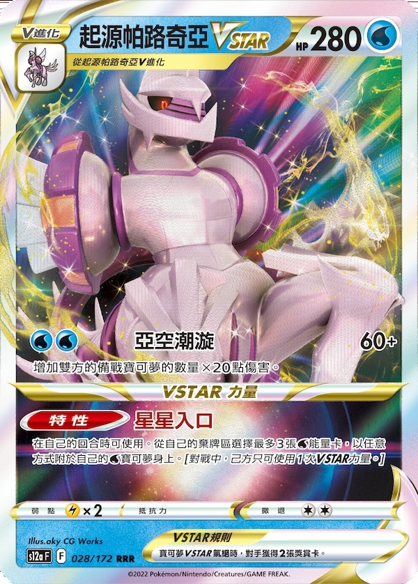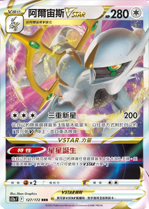 這次的高級擴充包「天地萬物 VSTAR」,除了將過去活躍的人氣卡牌如「夢幻VMAX/夢幻V」、「阿爾宙斯VSTAR/阿爾宙斯V」、「起源帕路奇亞VSTAR/起源帕路奇亞V」等眾多卡牌再度收錄外,還將會推出如「雷吉奇卡斯VSTAR/雷吉奇卡斯V」、「布莉姆溫VMAX/布莉姆溫V」等新卡牌讓玩家們收藏;同時也會追加將寶可夢特徵與繪師個性完美表現出來的新稀有度「AR/SAR」登場,讓玩家可以依照自己的喜好調整自己的牌組,讓自己的牌組戰力更上一層樓!