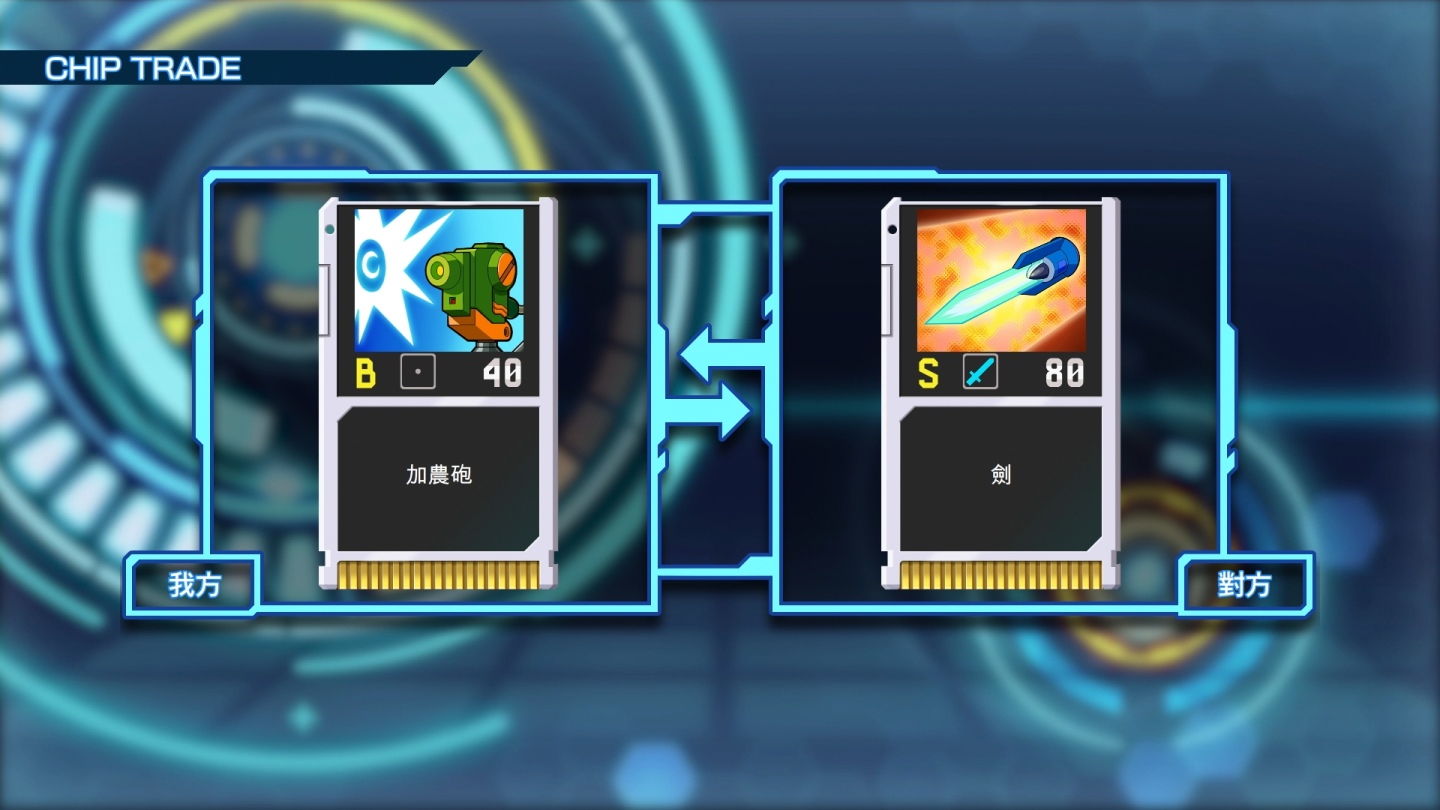 而交易功能能用於戰鬥晶片交易、洛克人型態及程式交易,資料夾交易亦是按着原作遊戲版本進行。交易功能可以選擇朋友之間進行的「私人交易」,或與世界上其他網路對戰員進行的「公開交易」。
