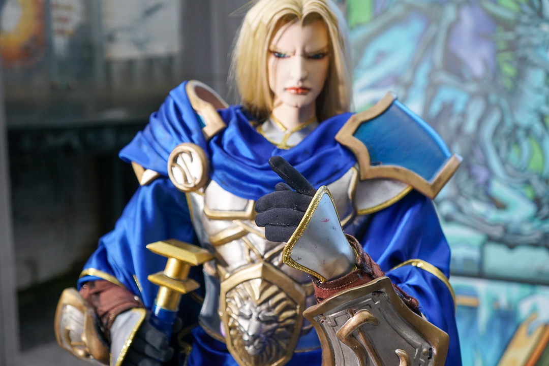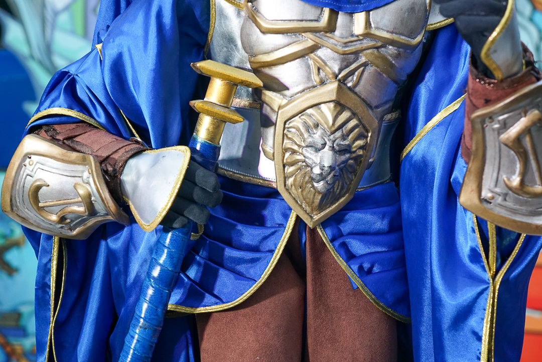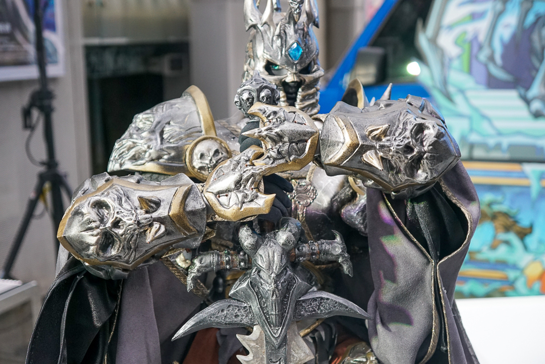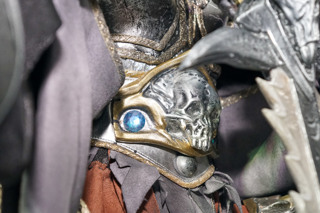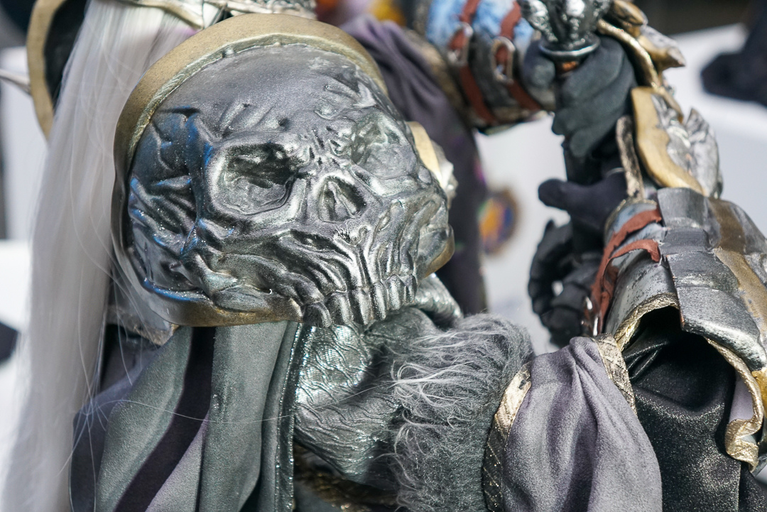 樊仕清補充,由於西方奇幻主以中世紀風格,霹靂則是仙俠風格,西方更強調肢體的動作,不像古裝布袋戲可用道袍等服裝去論飾,布料較多。巫妖王的盔甲比較多,光是確認尺寸給原作確認也花了快半個月,而造型製作方雖然沒玩《魔獸世界》,但從偶頭開始參考多方資料與影片,以 3D 列印還原角色的臉型與盔甲的質感。