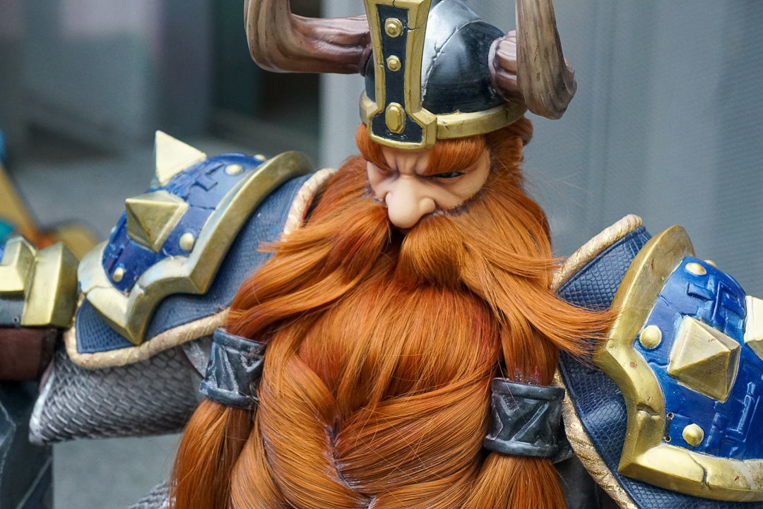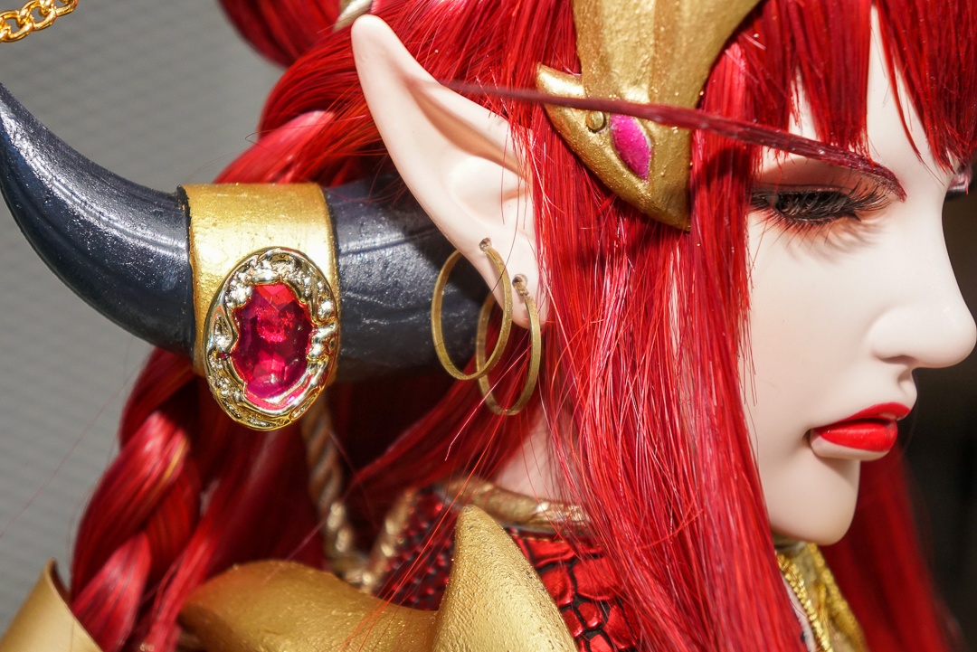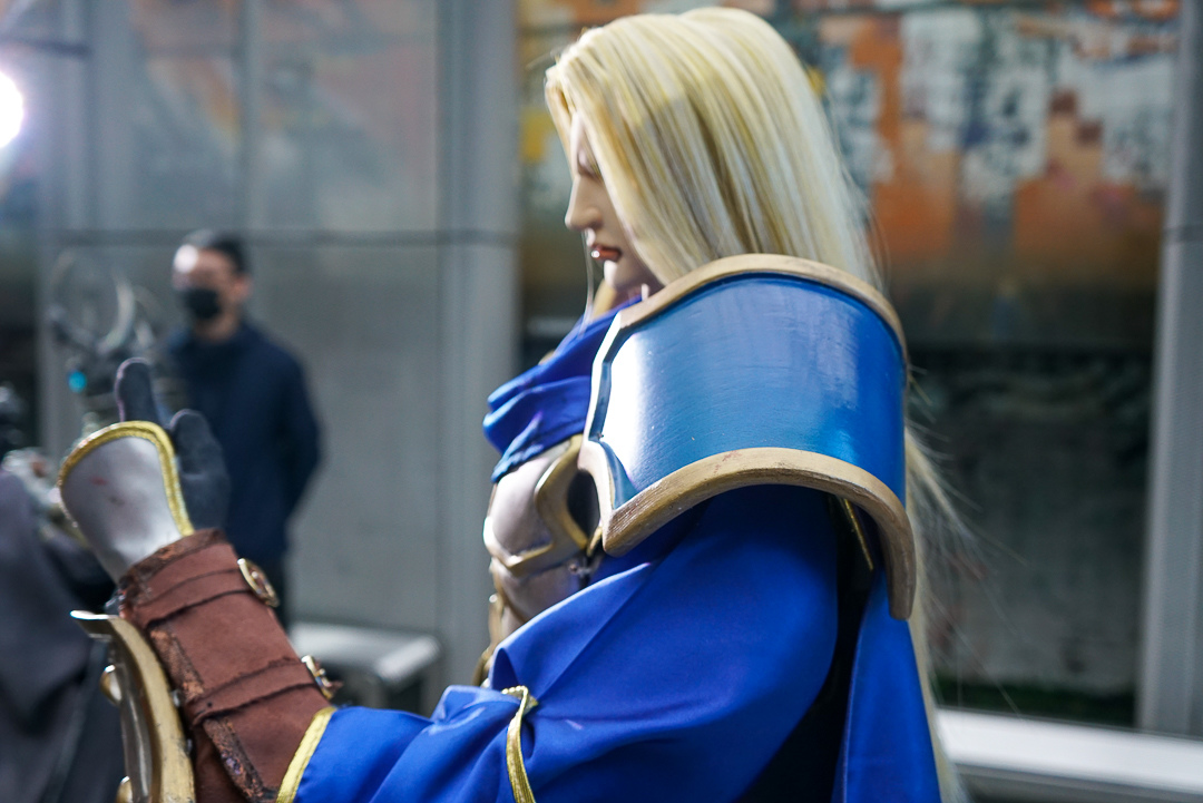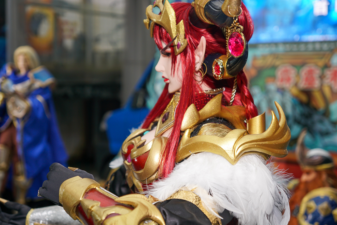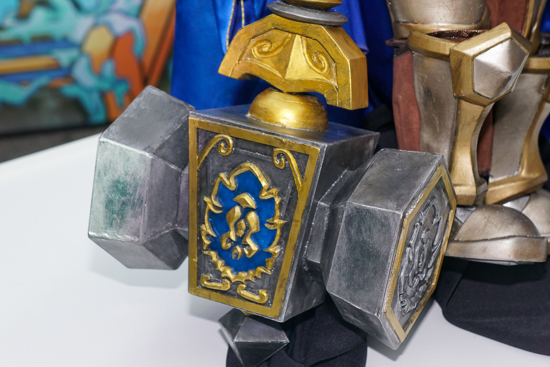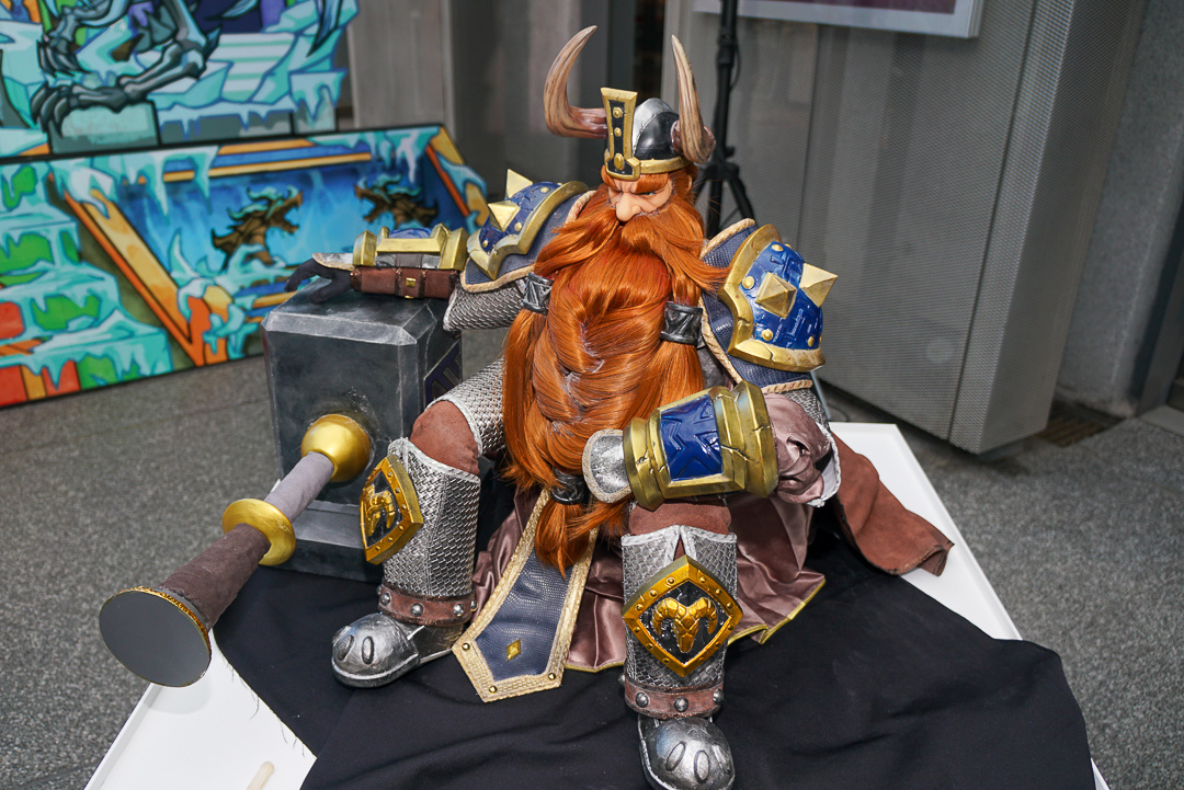 樊仕清補充,由於西方奇幻主以中世紀風格,霹靂則是仙俠風格,西方更強調肢體的動作,不像古裝布袋戲可用道袍等服裝去論飾,布料較多。巫妖王的盔甲比較多,光是確認尺寸給原作確認也花了快半個月,而造型製作方雖然沒玩《魔獸世界》,但從偶頭開始參考多方資料與影片,以 3D 列印還原角色的臉型與盔甲的質感。