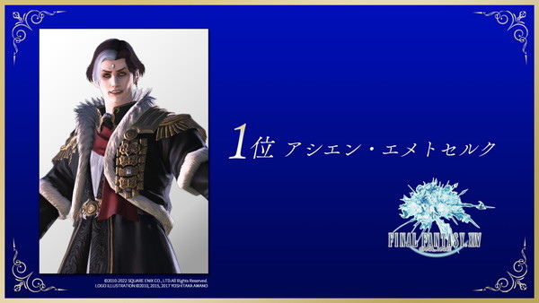 角色部門的前兩名可說是大爆冷門,在《FF14》5.0「漆黑的反逆者」擔任關鍵人物的「アシエン・エメトセルク」得到冠軍,第二名是由今年受到音MAD和迷因影響爆紅的《FF10》人氣配角「瓦卡」(ワッカ)獲得,第三名則是《FF7》主角克勞德,想要知道喜歡的角色有沒有上榜,可以到Niconico動畫結果頁面查看喔!