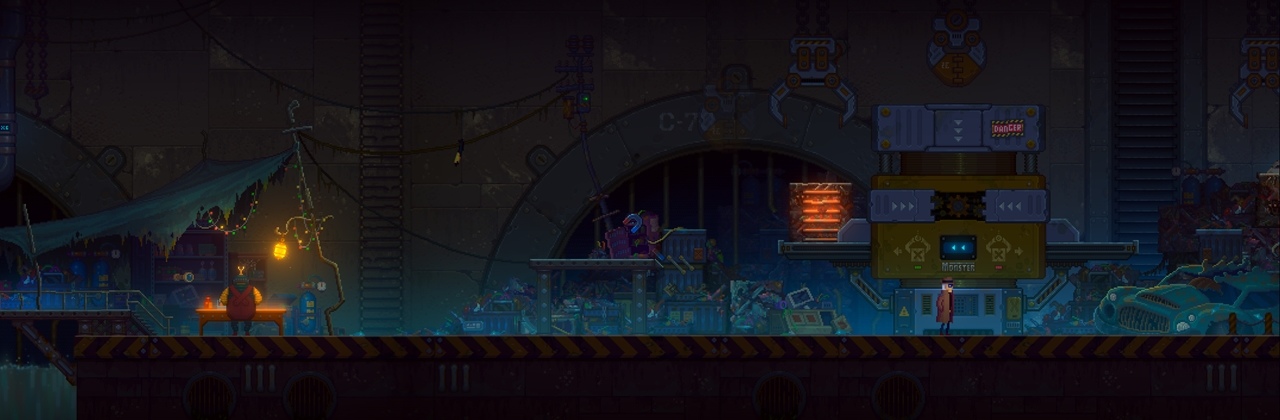 廢品回收站建在橋下區的安檢口下方,由管理人本負責。主要的作業是把回收的垃圾處理加工成高密度的方塊垃圾。