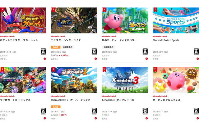 而在後續排名部分,於六月推出大型追加內容的《魔物獵人崛起》與新增賽道通行證的《瑪利歐賽車 8 豪華版》分別排在第五和第八,其他在今年發售的新作如《星之卡比 探索發現》、《Nintendo Switch 運動》、《異度神劍3》也都名列前茅,特別的是派對遊戲《胡鬧廚房2》位居第九可見其人氣歷久不衰。詳細的排行榜已在任天堂官網公開,好奇其他排名的玩家們不妨去確認看看吧。