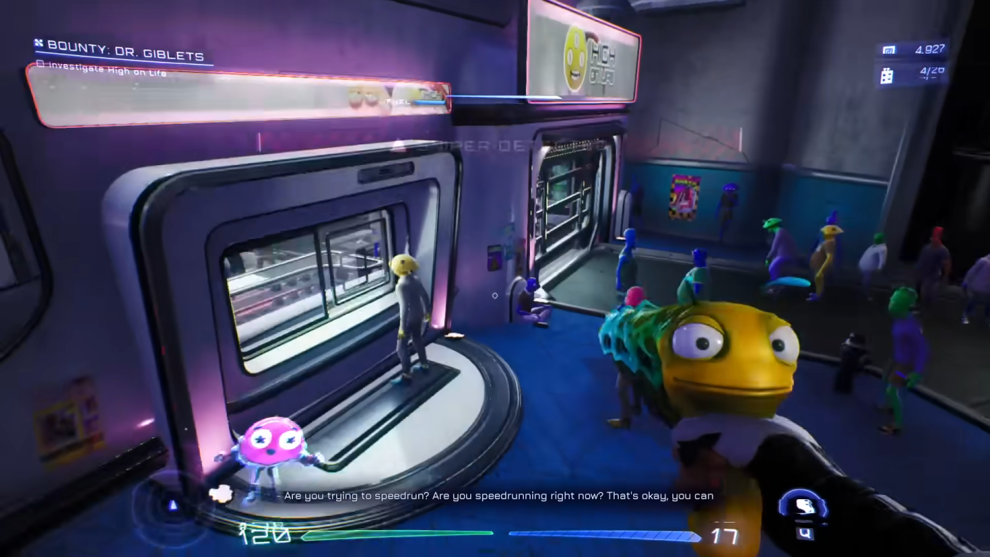Adult Swim 頻道招牌成人動畫《瑞克與莫蒂》系列聯合主創 Justin Roiland 以及其領軍的 Squanch Games 上月正式推出新作《嗨嗨人生》,充滿著滿滿的《瑞克與莫蒂》風格笑料與角色,在特定情況下玩家手上的外星槍夥伴或是裝甲的 AI 會直接打破第四道牆與玩家對話、吐槽。舉例玩家在探索關卡的過程中全程衝刺,外星槍就會吐槽玩家都不欣賞團隊在關卡細節下的工夫。當玩家朝著路人 NPC 開槍,外星槍也會拒絕照作,叫你別想亂殺人。目前就連玩家想要挑戰 Speedrun 時,遊戲也會知道。