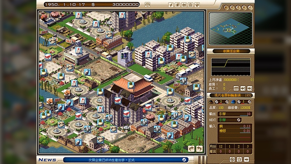 《創業王》則是一款硬派的商業模擬遊戲,玩家可在辦公區、高級及一般住宅區、商業區、工業區和文教區等,依不同的消費族群,由買地創業、購入機具佈置廠房、僱用員工,打造生產線等通通一手包辦!