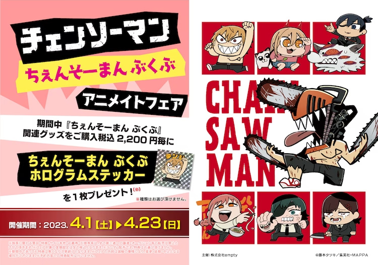 電視動畫《鏈鋸人》將在 4/1~4/23 期間於安利美特開辦「《鏈鋸人》CHAINSAW MAN BUKUBU 安利美特購物節」。