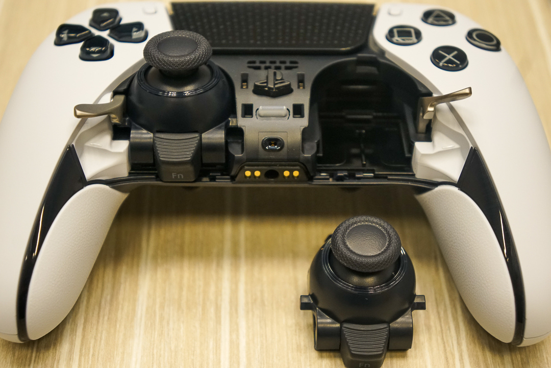 但現場測試中並不能體驗到續航力的問題,雖然目前歐美媒體均指出續航力比 DualSense 還要差,編輯手感上覺得可能在於他的回饋感作的是比 DualSense 更強烈些,加上能夠高度自訂化的設計,所以更加消耗電量,而為了重量考量,也還是採用 DualSense 的內藏電池,所以曝露出來的就是電力消耗問題,所以變成重度玩家長時間遊玩勢必要有線操作,因應此情境做了防止 USB C 電源線脫落的設計。