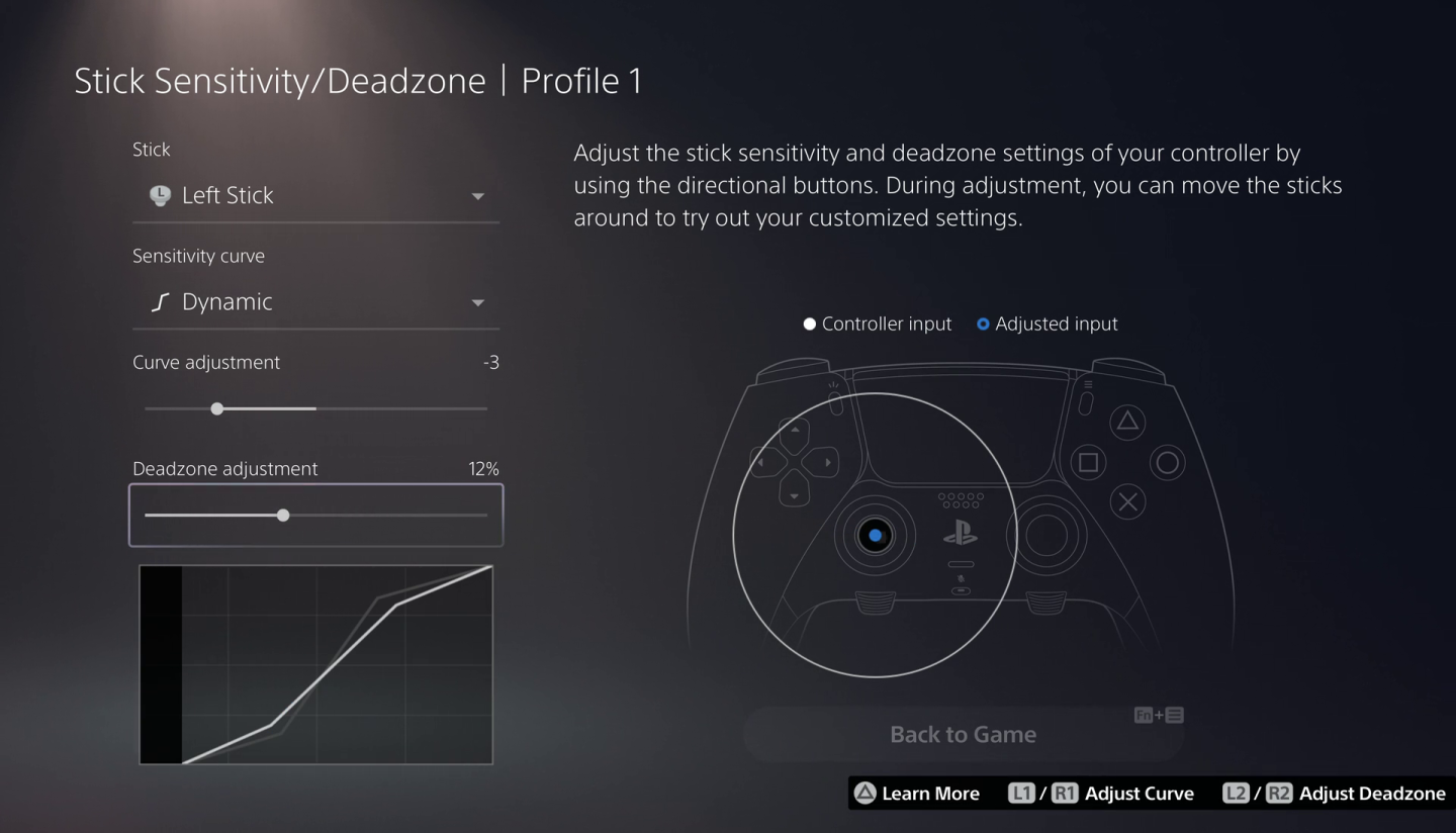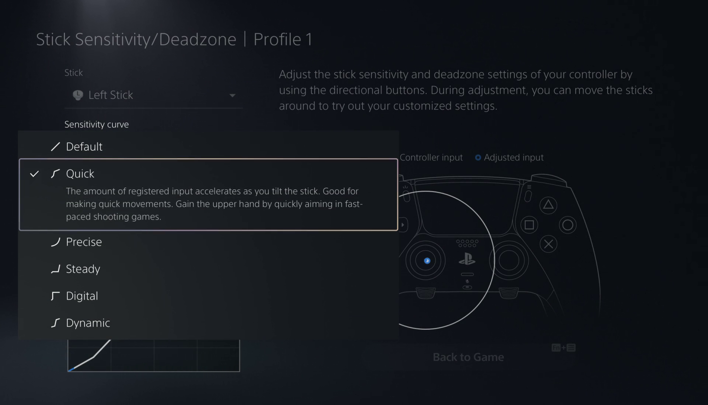 如果原本已經使用過 Dual Sense 的玩家,使用 DualSense Edge 基本上不會有任何障礙,而「操作感靈敏度」的五種選項設計,可以讓玩家在不同遊戲中選擇更適合的敏感度,《跑車浪漫旅 7》原本容易打滑的過彎,可以利用「穩定」來控制移動範圍,而對於手把操作射擊遊戲苦手的玩家,也能不斷調整操作感靈敏度來上手。