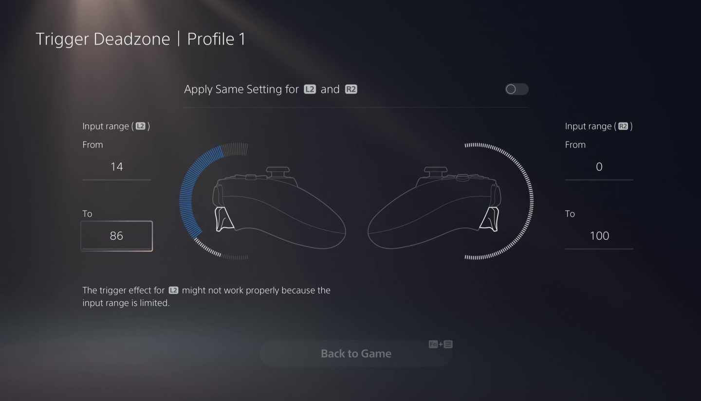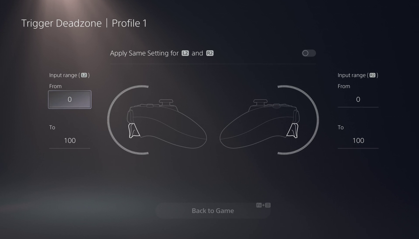 R2 / L2 自適應觸發器外觀沒什麼不同,但是有三種層級的扳機按壓距離可以調整,由於 DualSense 為呈現回饋觸感的自適應觸發器,按壓距離比一般控制器還要來的長,但並不是所有遊戲都對回饋觸感有所要求,像是需求短按壓距離更有利快速射擊的《決勝時刻:現代戰爭 2》,就相當適合調整為最短距離,不過這樣勢必就是犧牲掉按壓時的阻力回饋感,但是能達到更快速的指令輸入。
