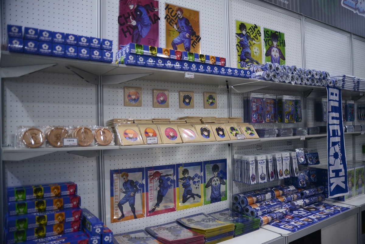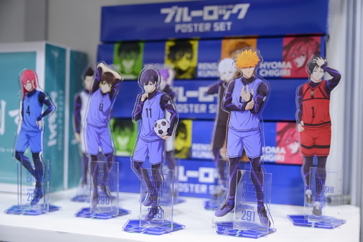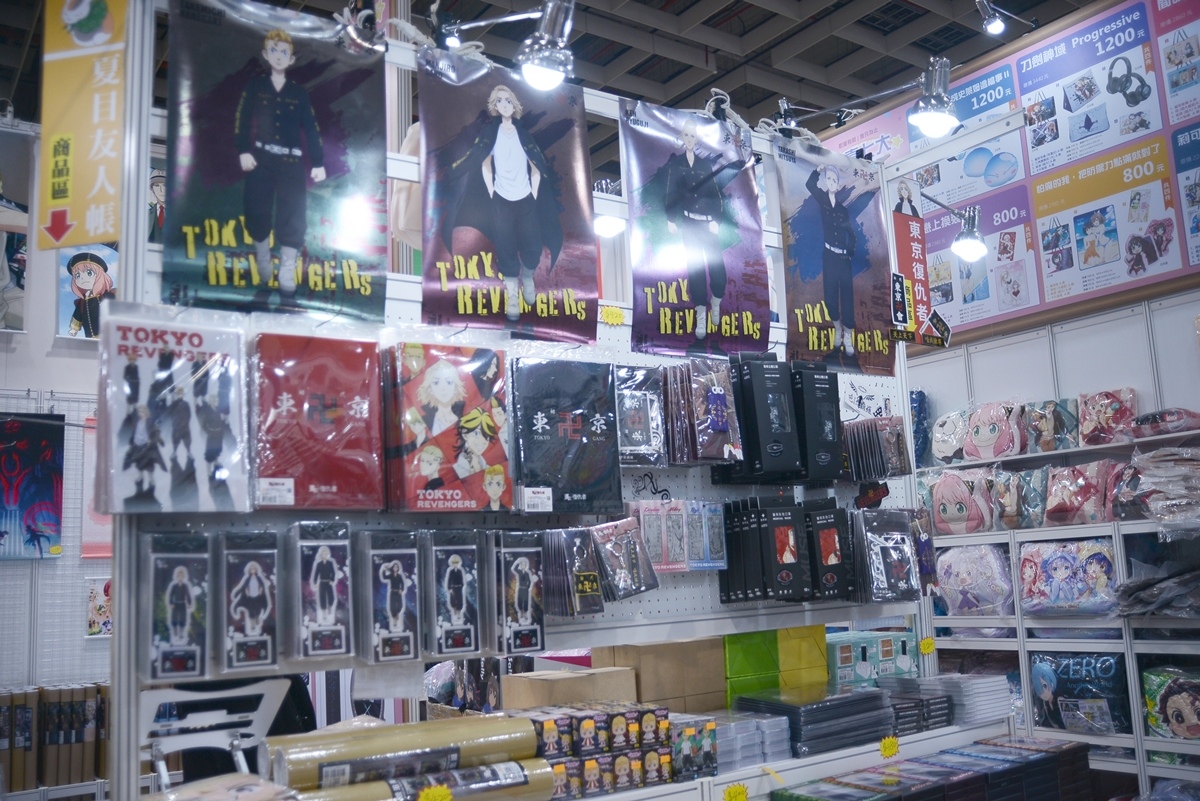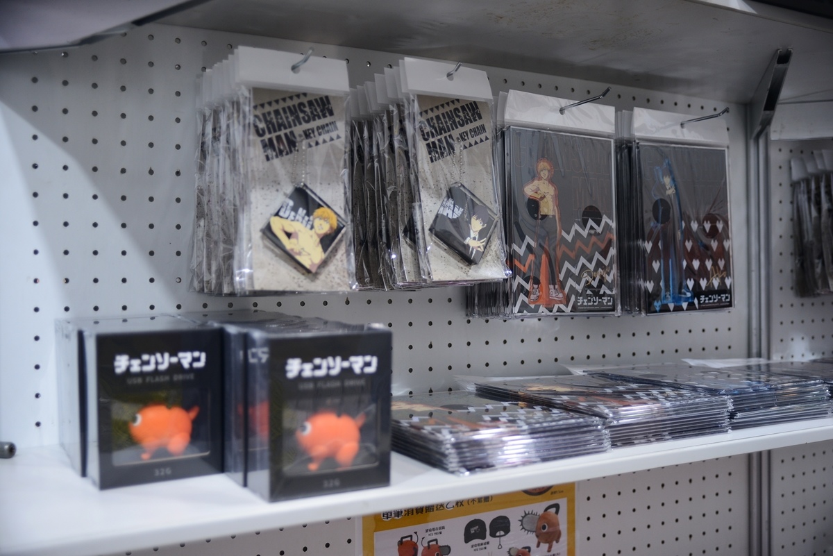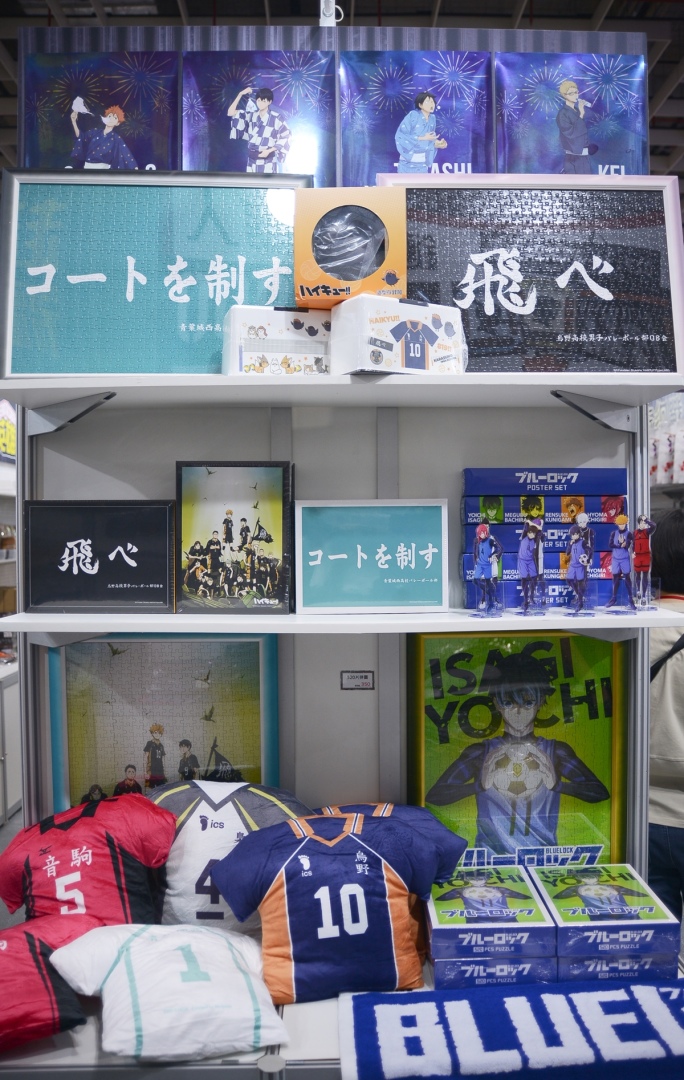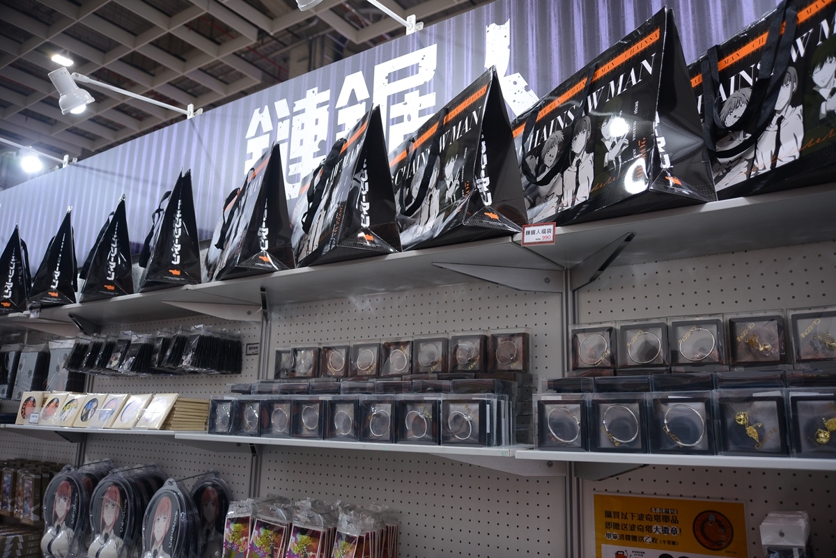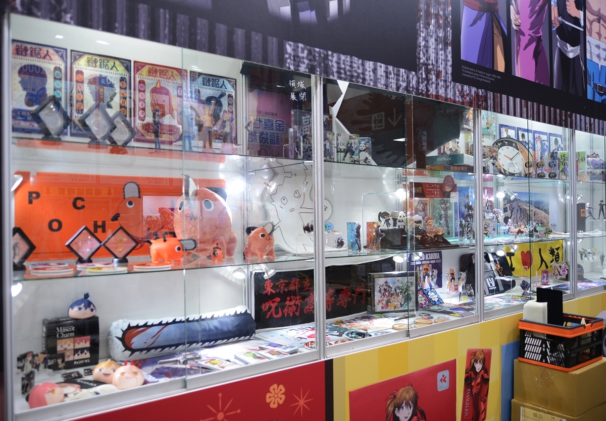 左邊是超大型木棉花,右邊則是鎧之羚邦!這次以硬派外觀布置的羚邦攤位也囊括 2022 年最熱大作:《鏈鋸人》、《咒術迴戰》、《藍色監獄》等,場內貨架也是擺好擺滿,從桌上用的到身上穿的無一不缺!