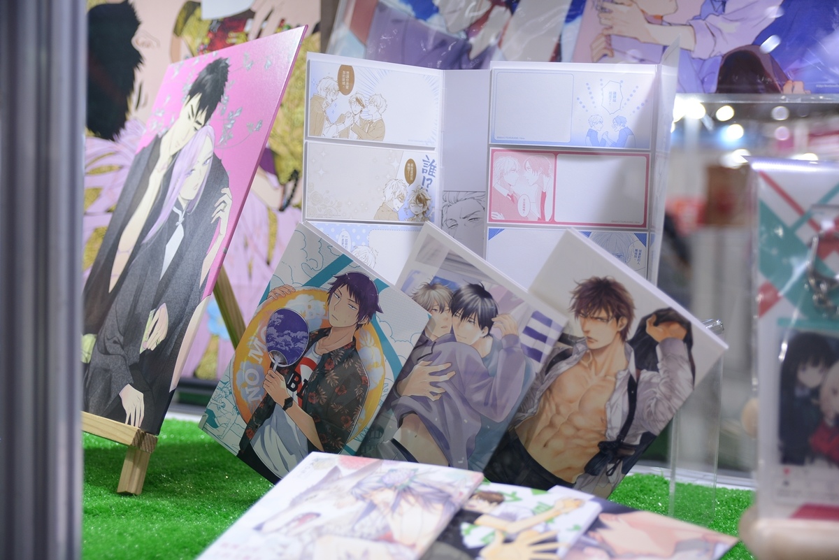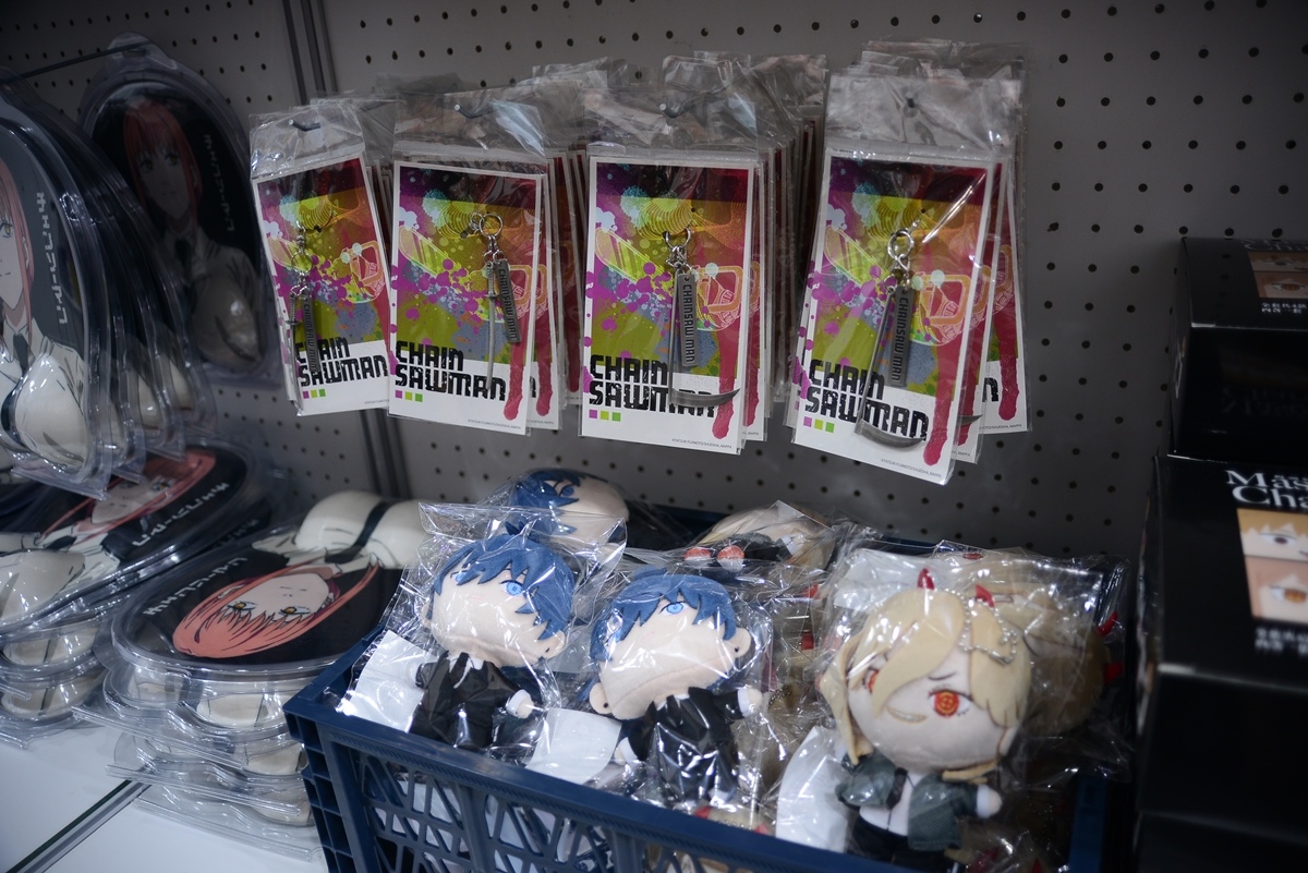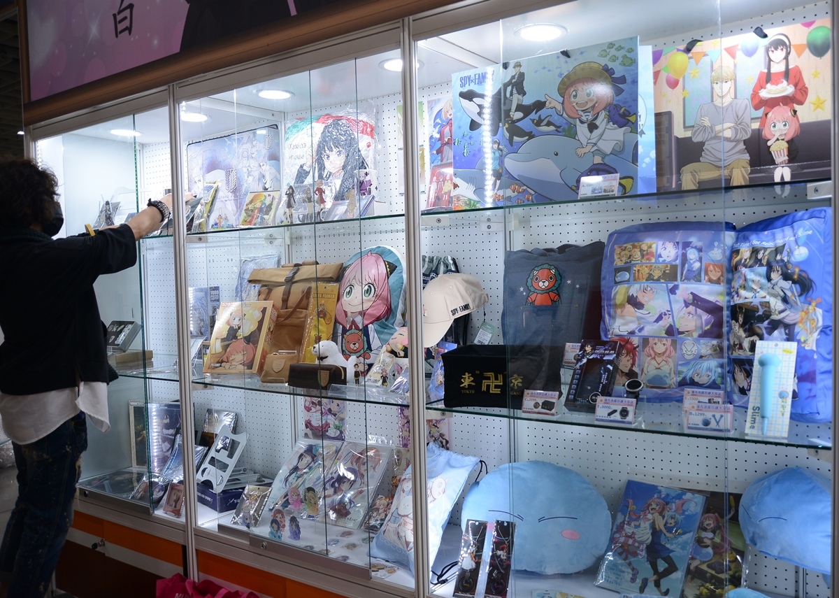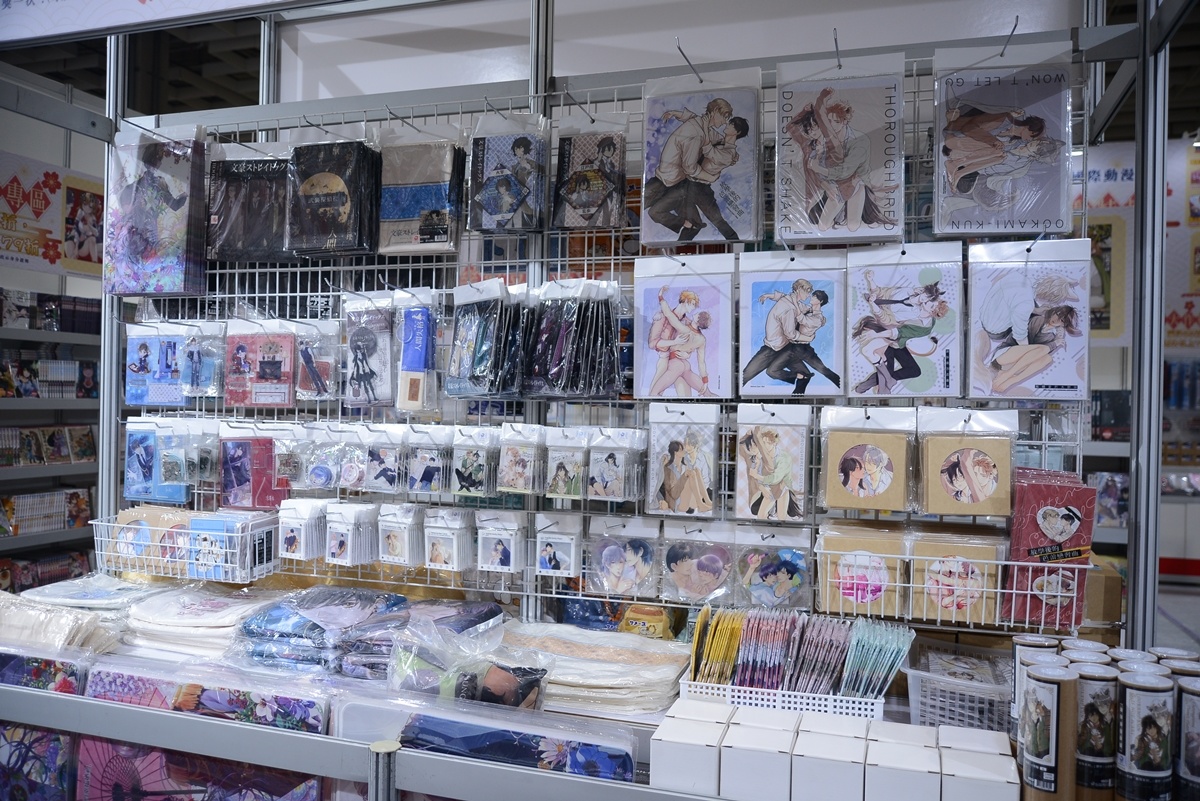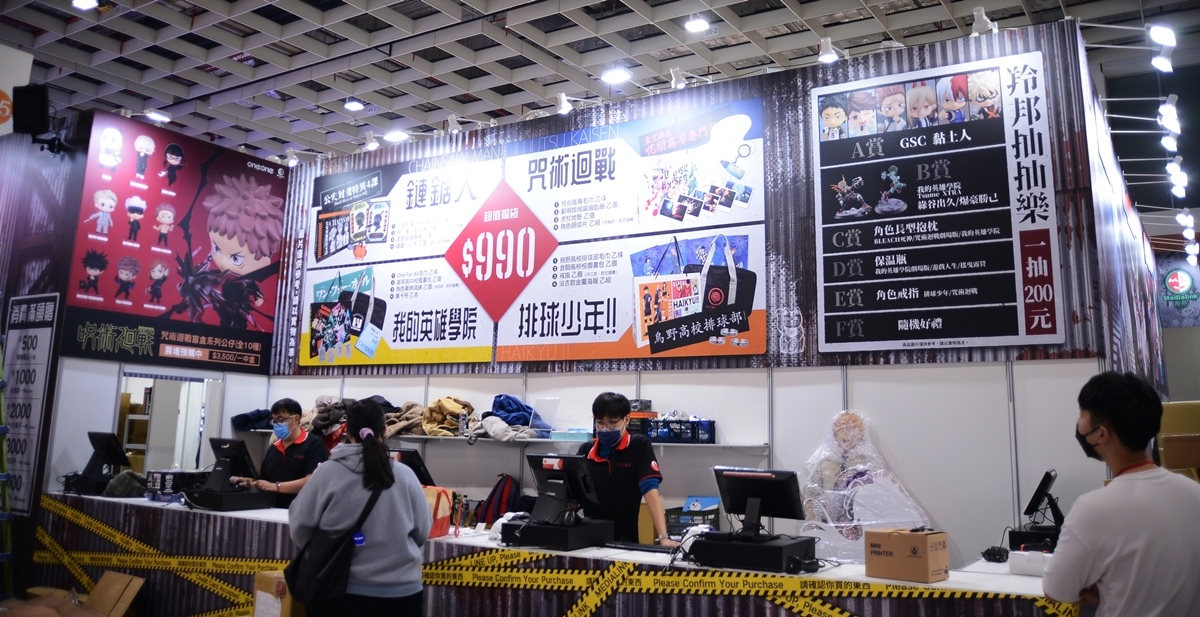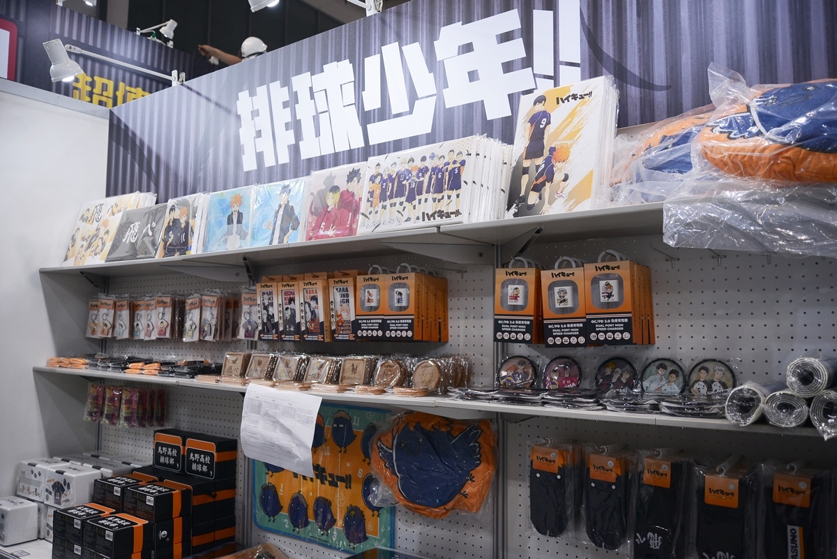 左邊是超大型木棉花,右邊則是鎧之羚邦!這次以硬派外觀布置的羚邦攤位也囊括 2022 年最熱大作:《鏈鋸人》、《咒術迴戰》、《藍色監獄》等,場內貨架也是擺好擺滿,從桌上用的到身上穿的無一不缺!