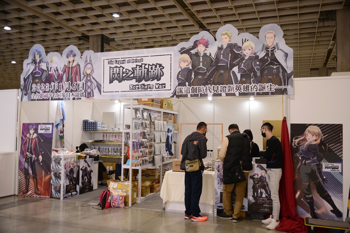 知名遊戲改編動畫《英雄傳說 閃之軌跡:北方戰役》加大宣傳力道特別到動漫節設置攤位,於台北地下街也有宣傳品可索取;有病製作過去默默耕耘,這次要在 1/29 於動漫節發表新合作!Slogan 挺特別:「老公、老婆會一直換,但大哥不會」,真是令人好奇啊!KONAMI 帶來遊戲王卡牌攤位,在太過炫砲的色光燈管下打牌希望大家的眼睛還撐得住 XD