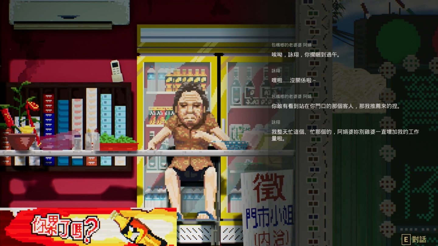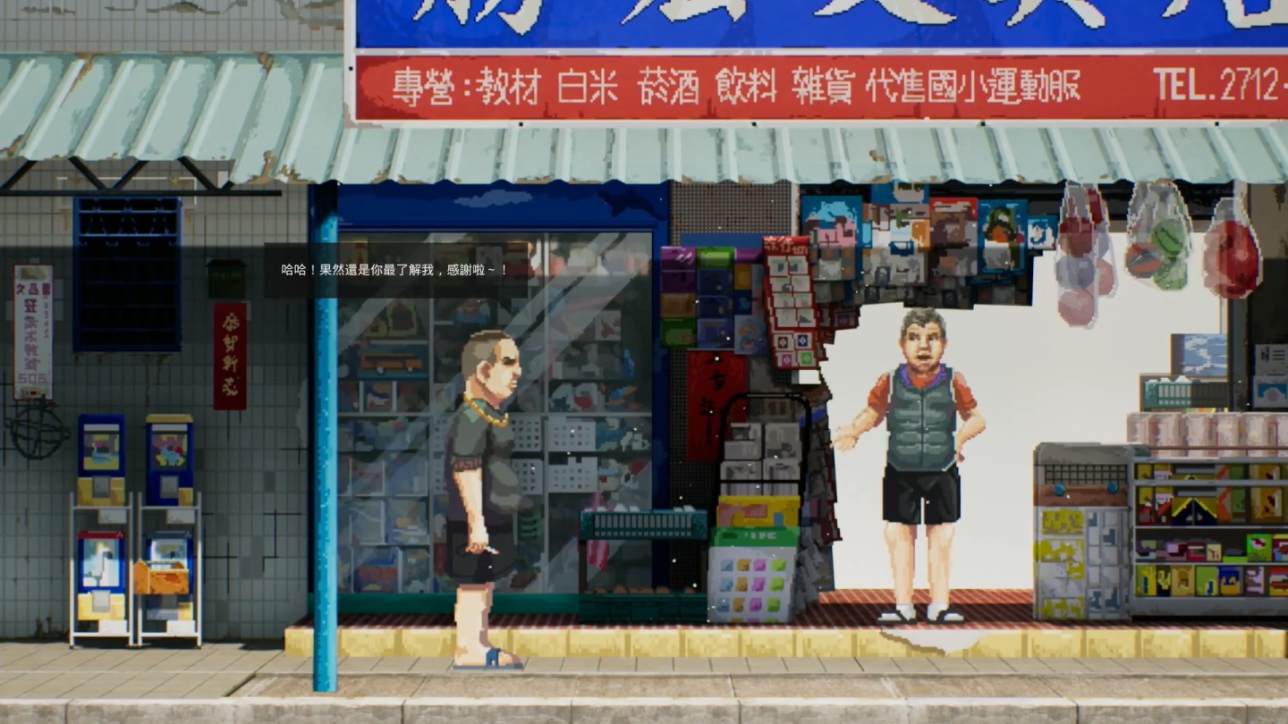 負責場景與角色像素美術的呂理翔透露,展場體驗版的內容花了四個月完成,還會在追加場景移動的動畫,而一個角色的基本繪製需要 3-4天,雖然當前版本還看不出角色情緒的變化,但有考慮後續追加。 遊戲的場景相當有在地風味,甚至有些店家是實際取材自真實地在地的店舖設計而成。