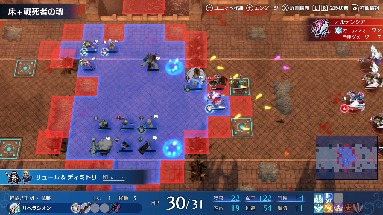 整體來說本作在戰鬥相關方面水準非常高,除了創下系列新高,具有高度可玩性、利用紋章士給玩家帶來爽快感之外,關卡設計也相當精妙,維持相當具有挑戰性的難度。筆者為盡快掌握遊戲全貌,所以在第一輪是使用普通難度,但即使如此在沒有刻意練功的前提下,從中期開始就會有不少關卡讓人感覺到相當棘手,相信一定能夠讓大部份系列玩家感到滿足。