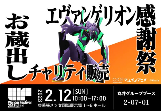 《新世紀福音戰士》將於 2/12 在千葉幕張展覽館舉辦的「Wonder Festival 2023 [冬]」丸井集團攤位中舉行「新世紀福音戰士感謝祭」,預計釋出多項絕版商品,販售所得金額將用來保存動畫、特攝文化資料。
