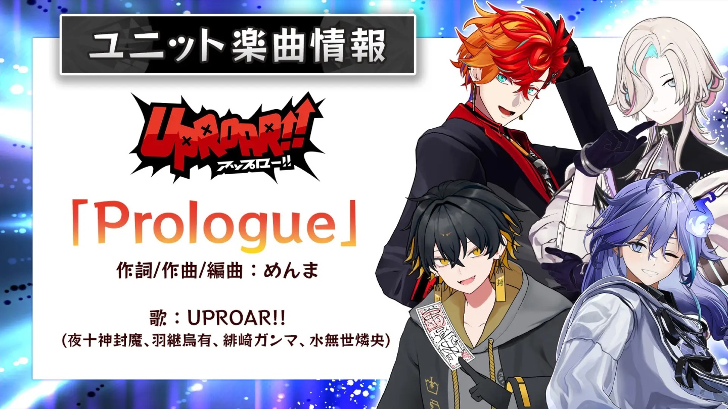 UPROAR!!於 2022 年 3 月正式出道,所屬成員包含萬事屋「夜十神封魔」、怪盜「羽継烏有」、漫畫家「緋崎伽瑪」和幽靈「水無世燐央」,為了成為偶像每天努力的進行直播,從 2022 年 7 月起有了自己的冠名節目「Jump UPROAR!!」,更在 2022 年 11 月時揭露了四位成員的 3D 造型。