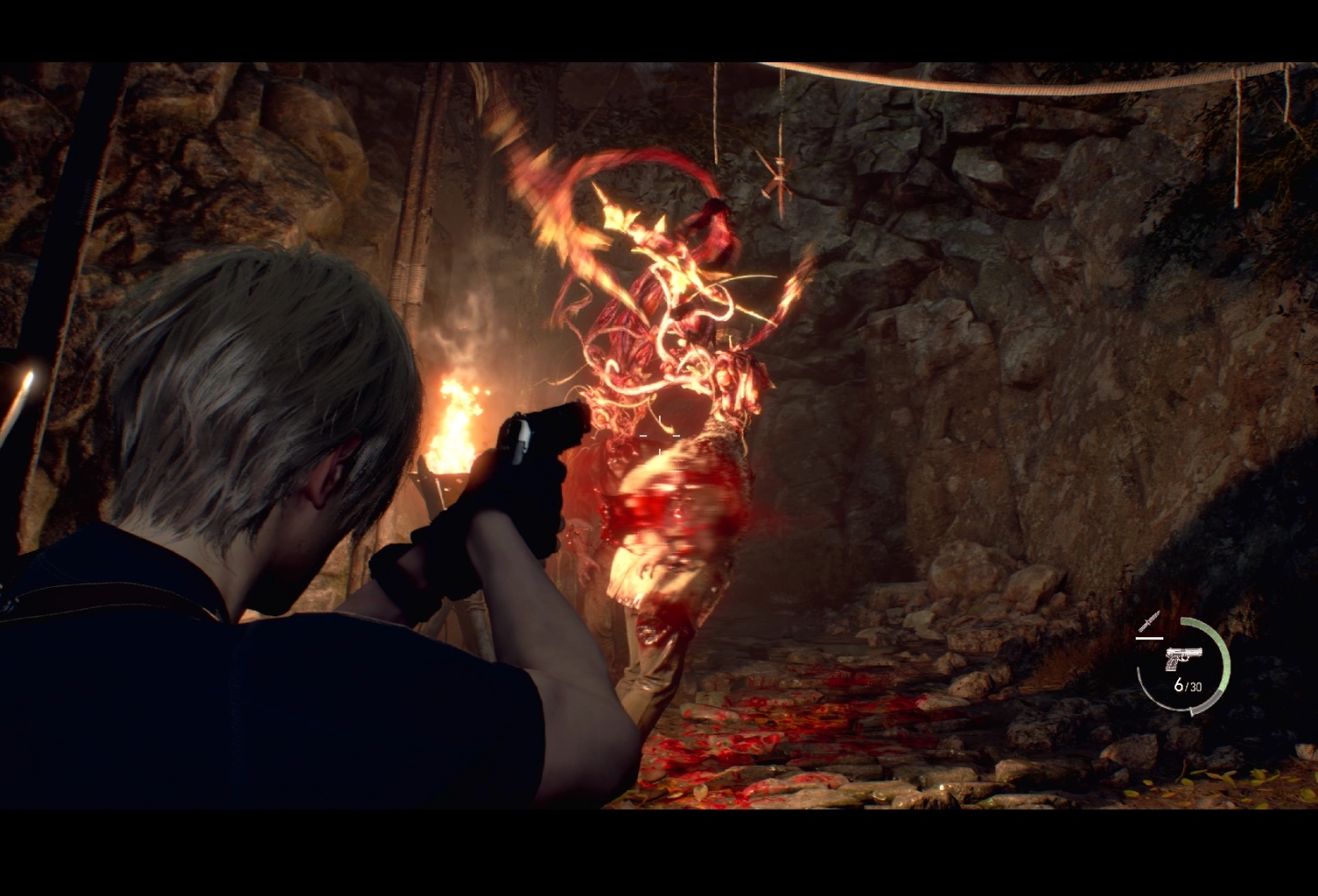 而且由於這次並不是病毒感染,而是將寄生體「Las Plagas」寄附在人體中,因此也會把握這個特徵,透過生物性的快慢動作來強調被寄生的人類怪物「Ganados 加納德」的恐怖之處。