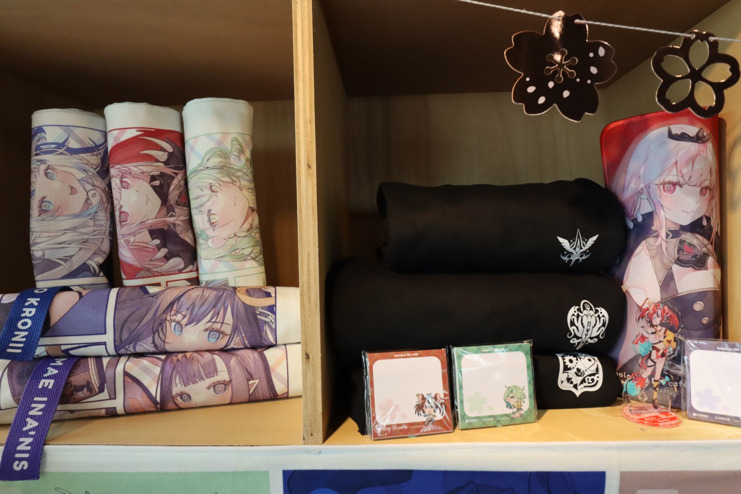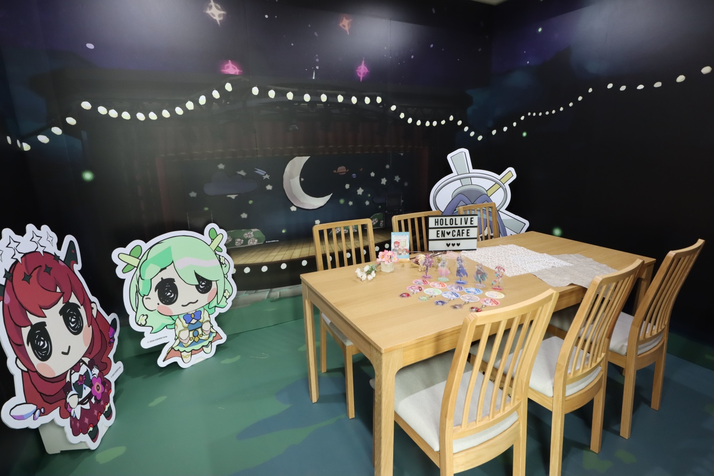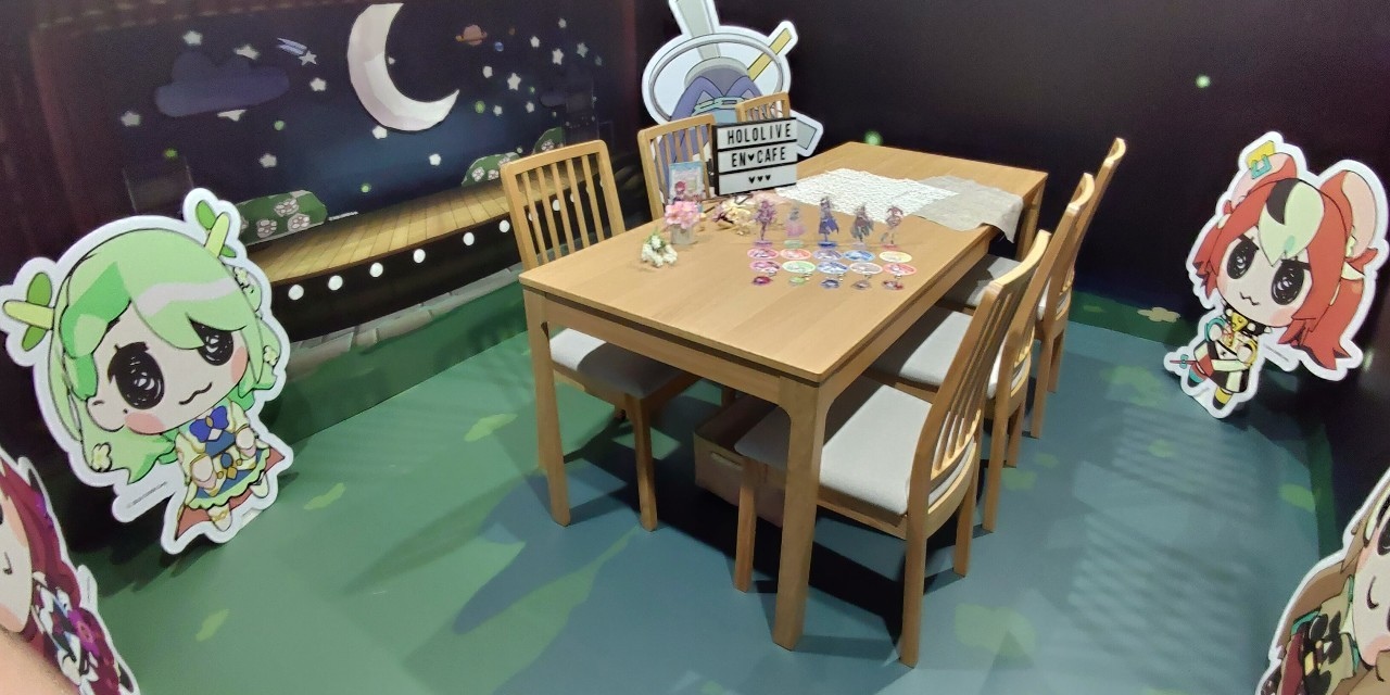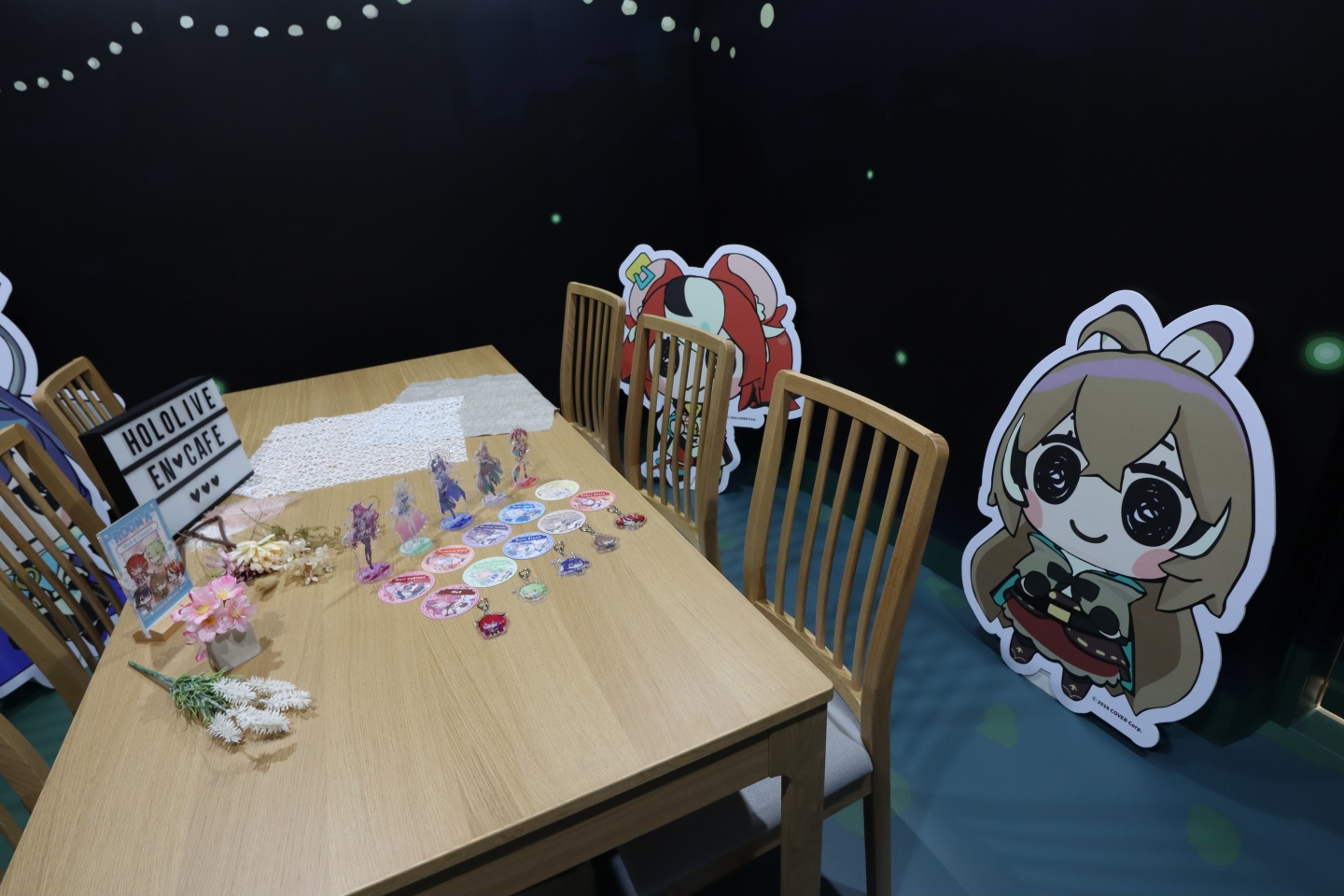 除了讓粉絲們大飽口福和滿足打卡慾望的餐點以外,官方也推出了多種周邊商品,包含外出穿著的服飾、日常生活用品、收藏用掛毯和壓克力立牌等近 20 種供粉絲選購,還有限定現場販售,由 hololive EN 成員特別為本次活動親筆撰寫的「留言色紙」,對於鐵粉來說絕對是必須收藏的紀念品,而在營運期間只要入場就能免費獲得明信片一張,兩個月內預計推出三種不同主題的款式,DD 們可要多來幾趟才能收集齊全喔!