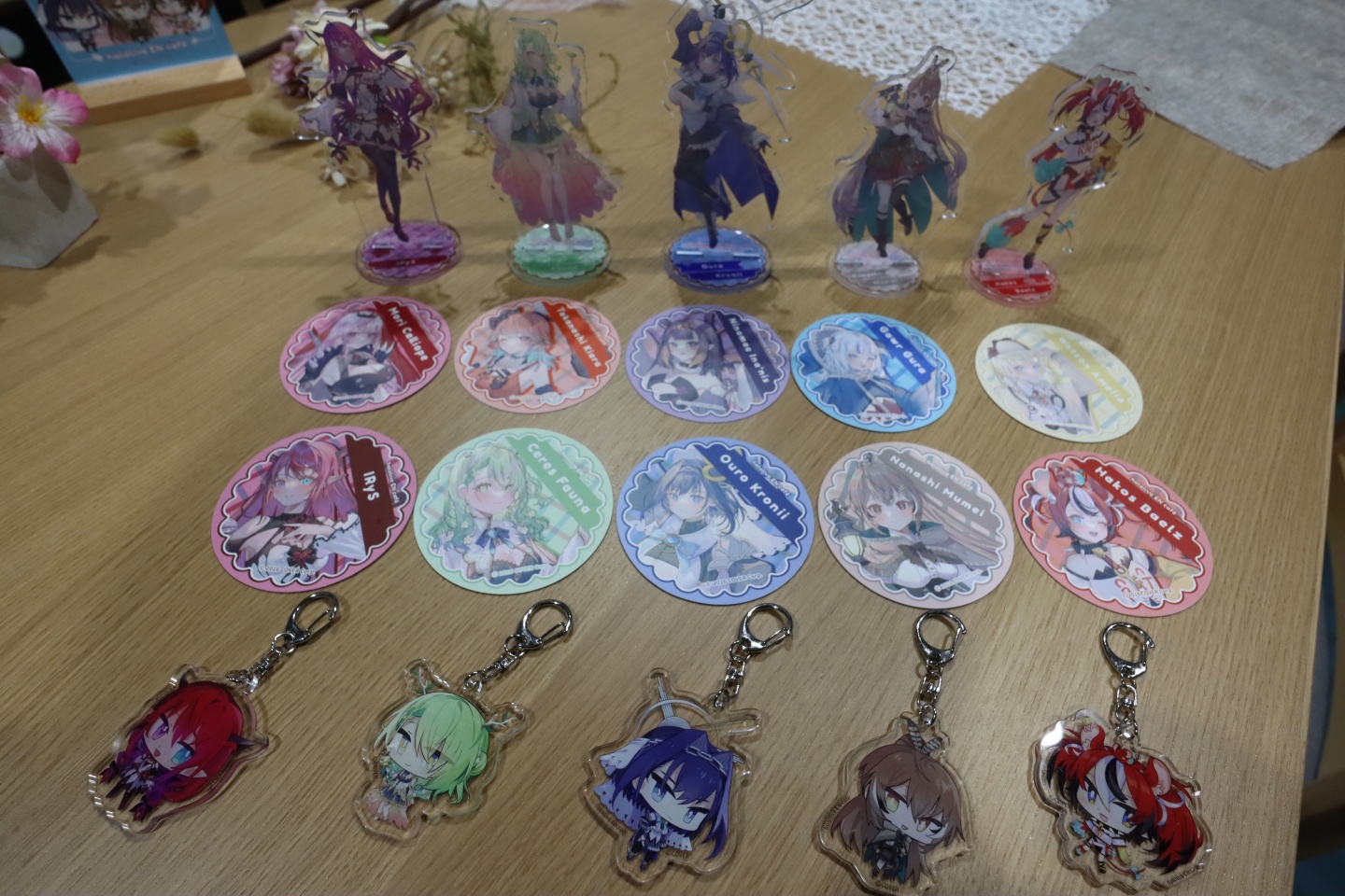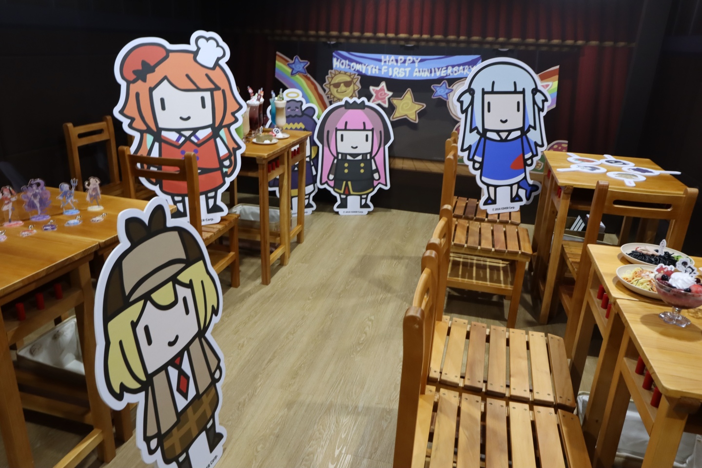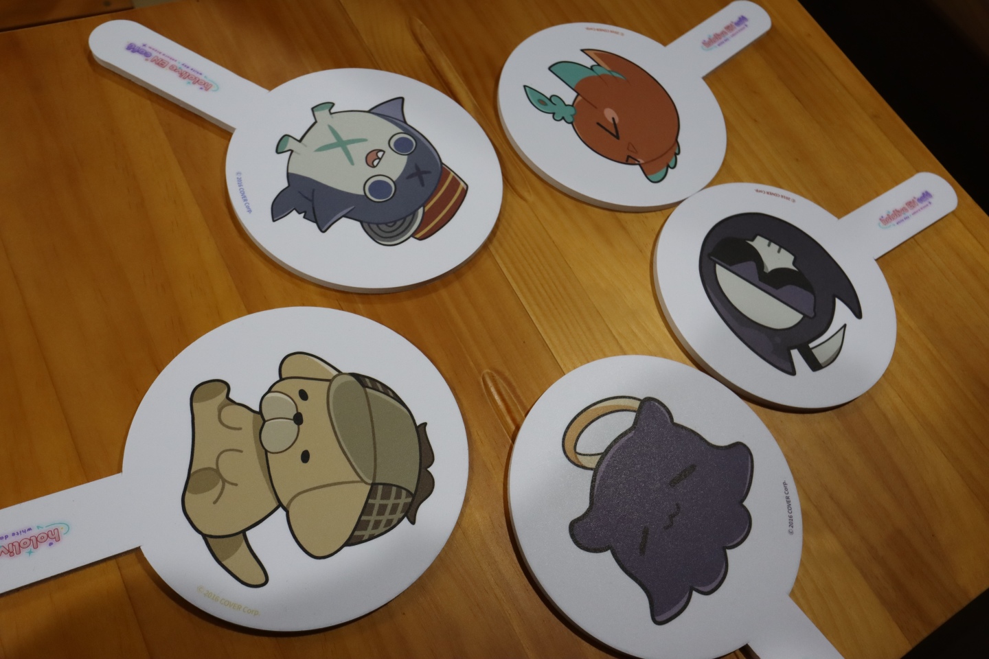 除了讓粉絲們大飽口福和滿足打卡慾望的餐點以外,官方也推出了多種周邊商品,包含外出穿著的服飾、日常生活用品、收藏用掛毯和壓克力立牌等近 20 種供粉絲選購,還有限定現場販售,由 hololive EN 成員特別為本次活動親筆撰寫的「留言色紙」,對於鐵粉來說絕對是必須收藏的紀念品,而在營運期間只要入場就能免費獲得明信片一張,兩個月內預計推出三種不同主題的款式,DD 們可要多來幾趟才能收集齊全喔!