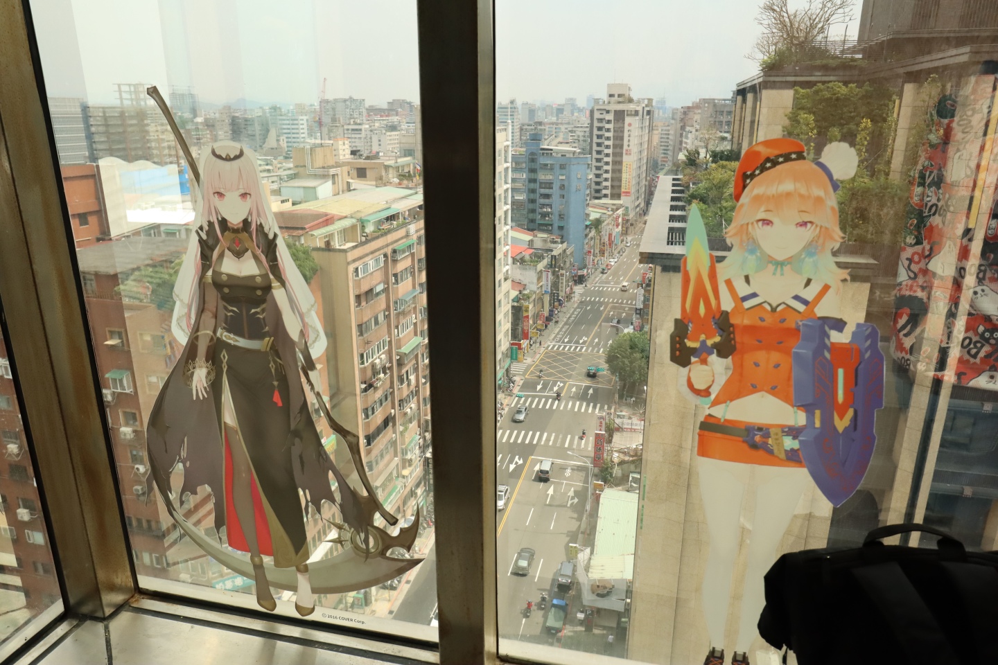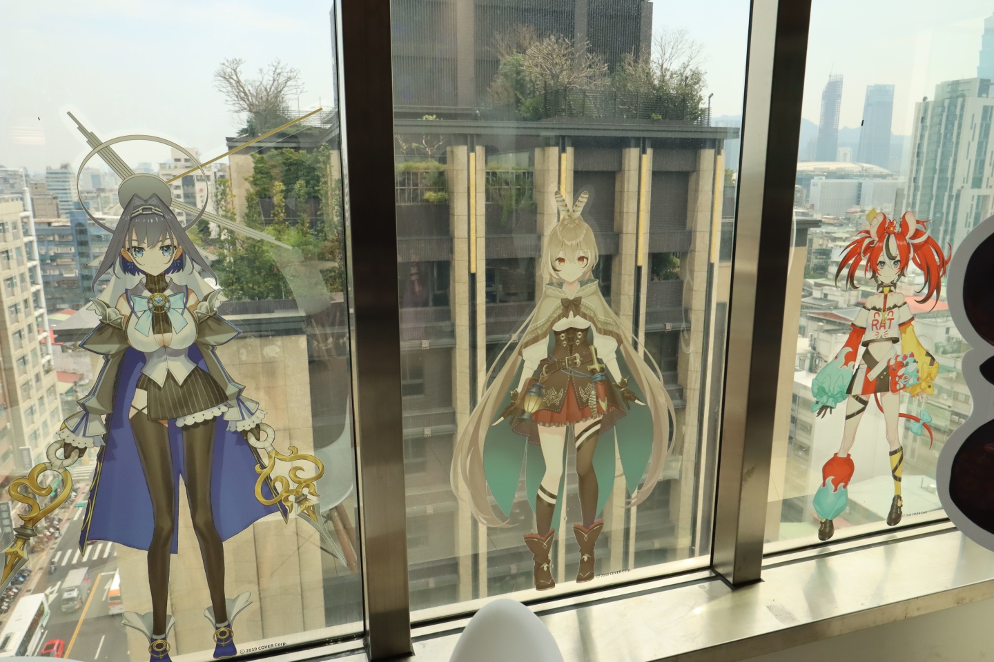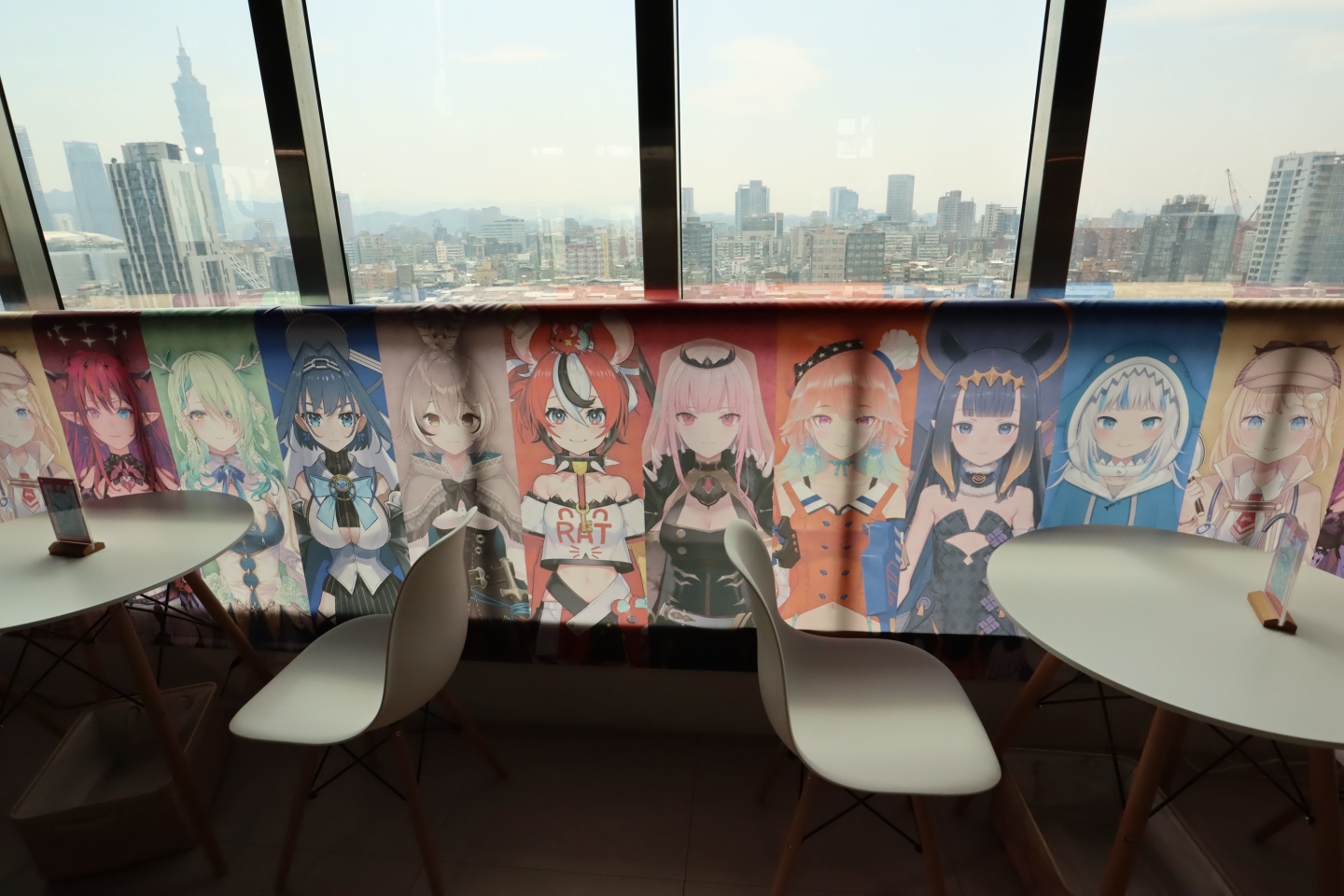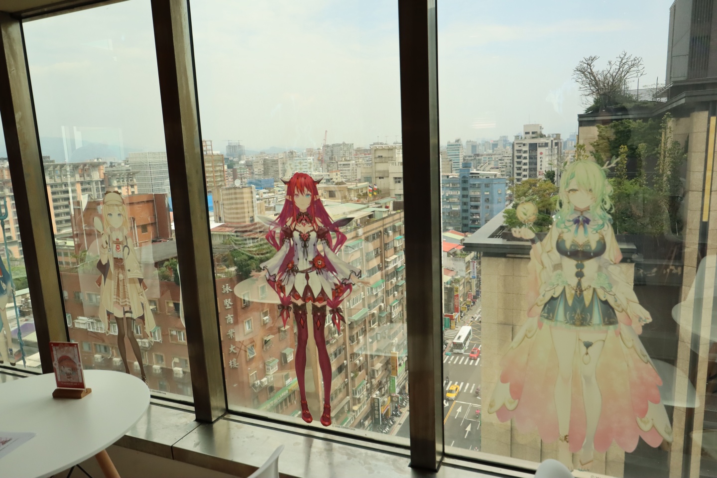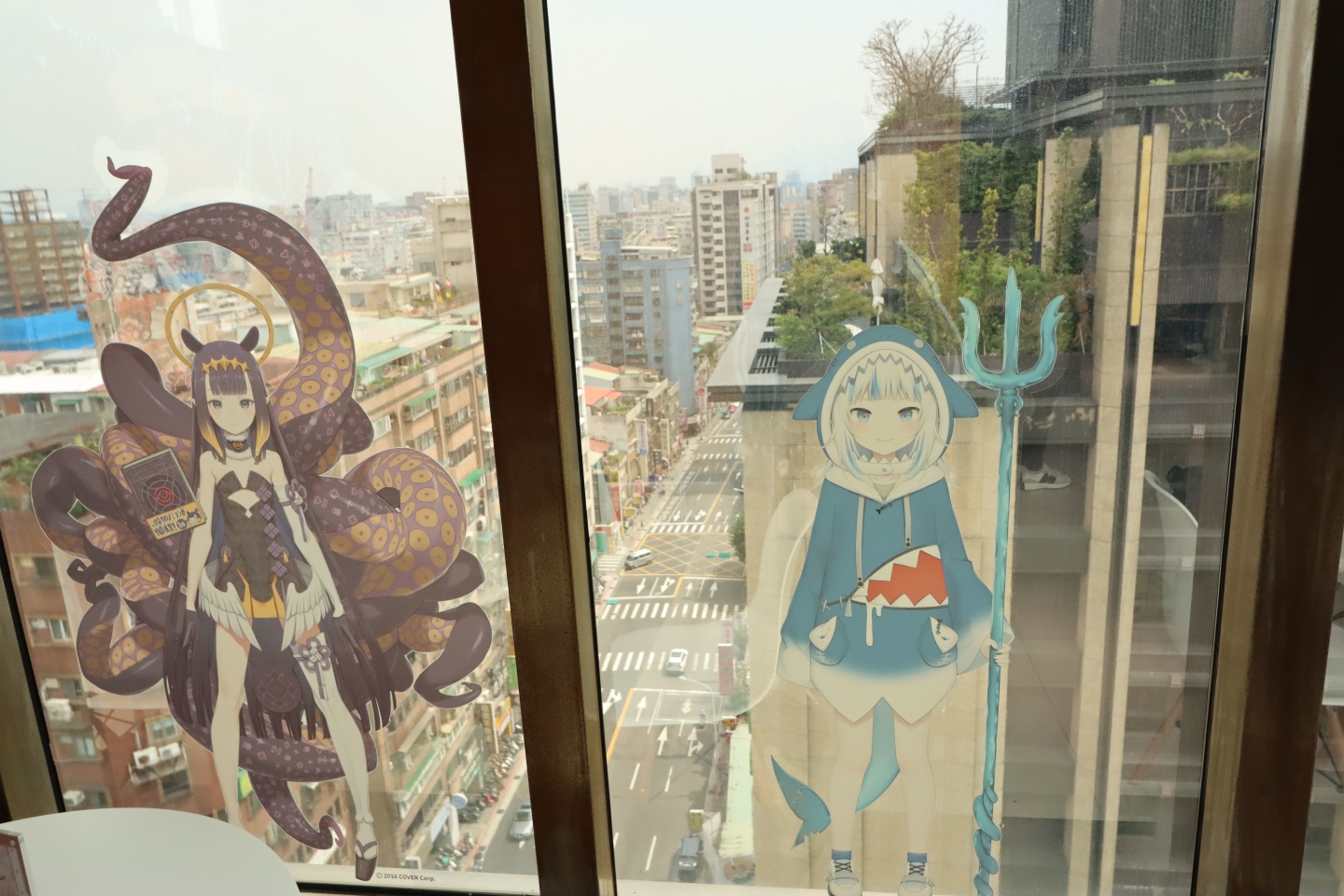 現場場佈,落地玻璃窗上還有角色們的壁貼