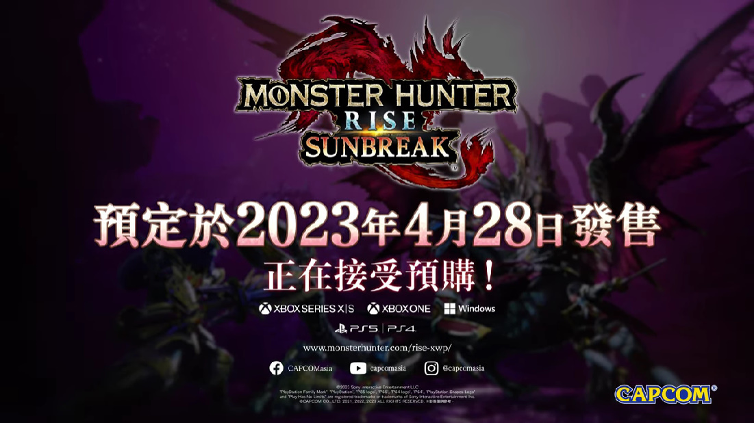 日本 Capcom 卡普空自 2021 年起陸續在 PC 與各大主機上發行中的《Monster Hunter Rise 魔物獵人 崛起》,自 2022 年 6 月底開始在 Nintendo Switch/PC Steam 發行大型改版《Sunbreak 破曉》後,如今官方再度於今天「Capcom Spotlight」節目中宣布,《破曉》的 PS5/PS4/Xbox Seires X|S/Xbox One/Windows 版也將自 4 月 28 日起正式改版上線。
