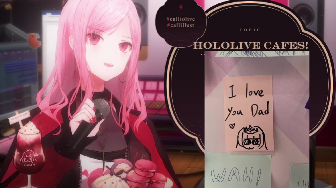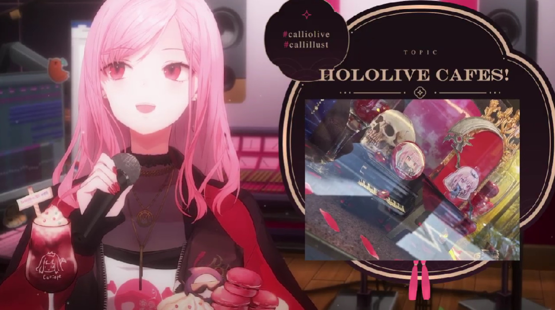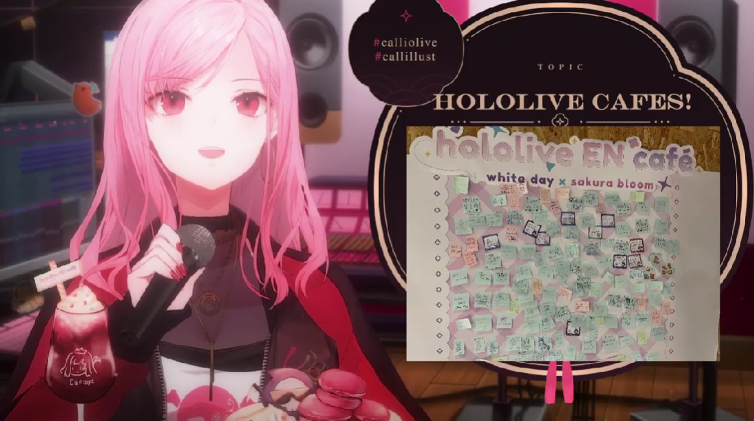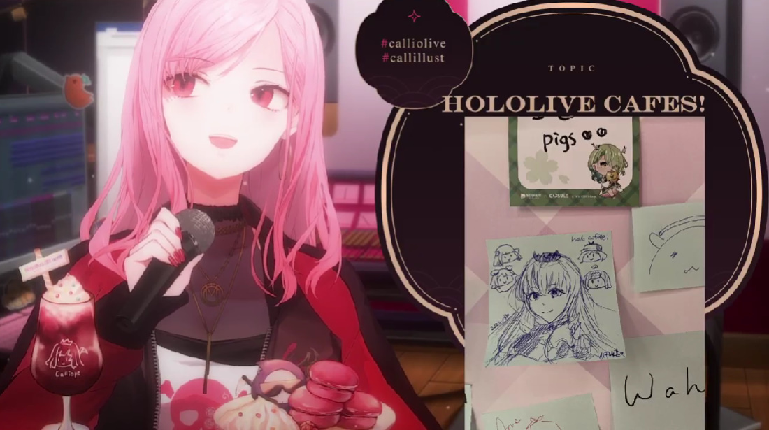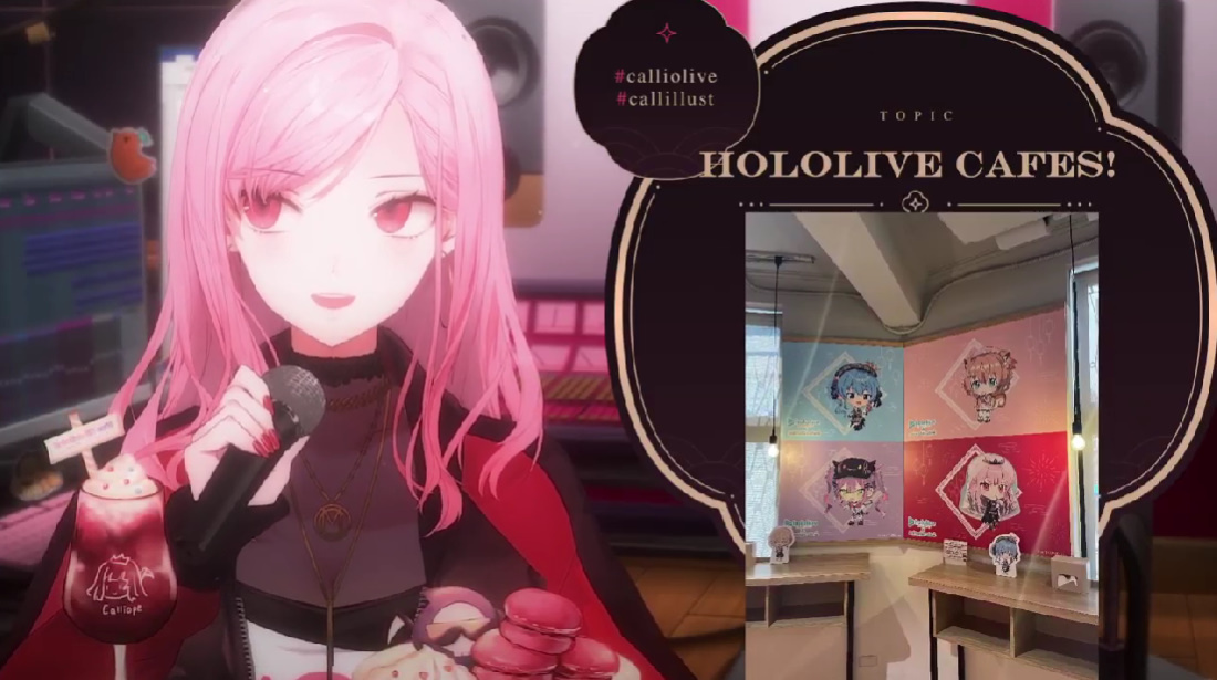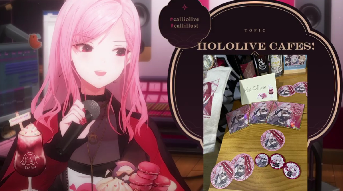 直播中森美聲先講到在安利美特聯名咖啡的心得,包含店內的擺設和以 hololive 成員為主題的專區布置,也享用了印有自己圖樣的印刷飲品,並吃了印有星街前輩的糖霜餅乾,而她不僅在立牌上留下簽名,也特地簽在簽名板上,近期粉絲們如果有去安利美特咖啡朝聖的話都可以自由拍照。