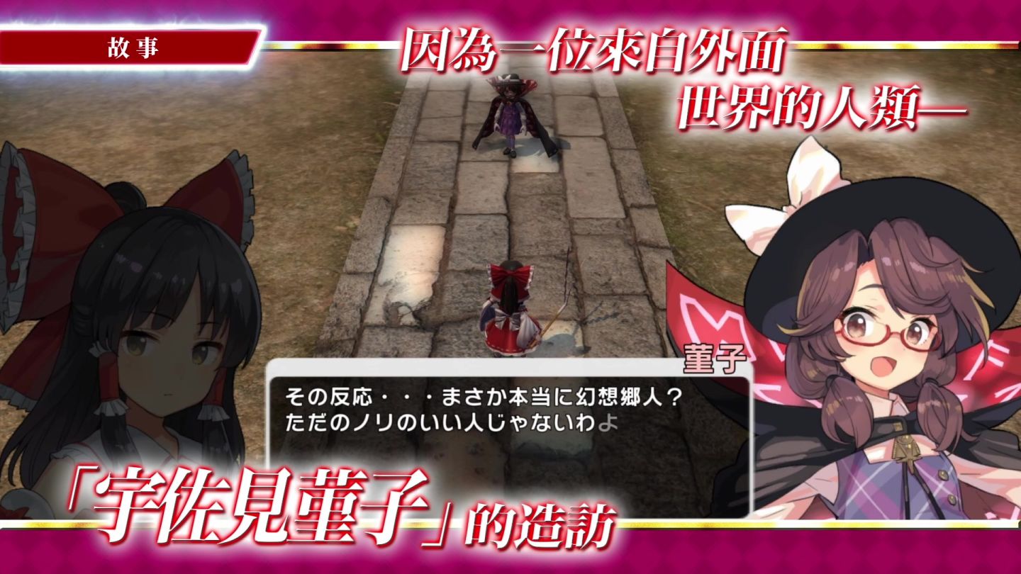 在官方預告片中可欣賞巫女「博麗靈夢」和魔法師「霧雨魔理沙」使用豐富的技能與符卡,挺身對抗怒濤般的彈幕與層出不窮的強敵,並能進一步了解本作的魅力。