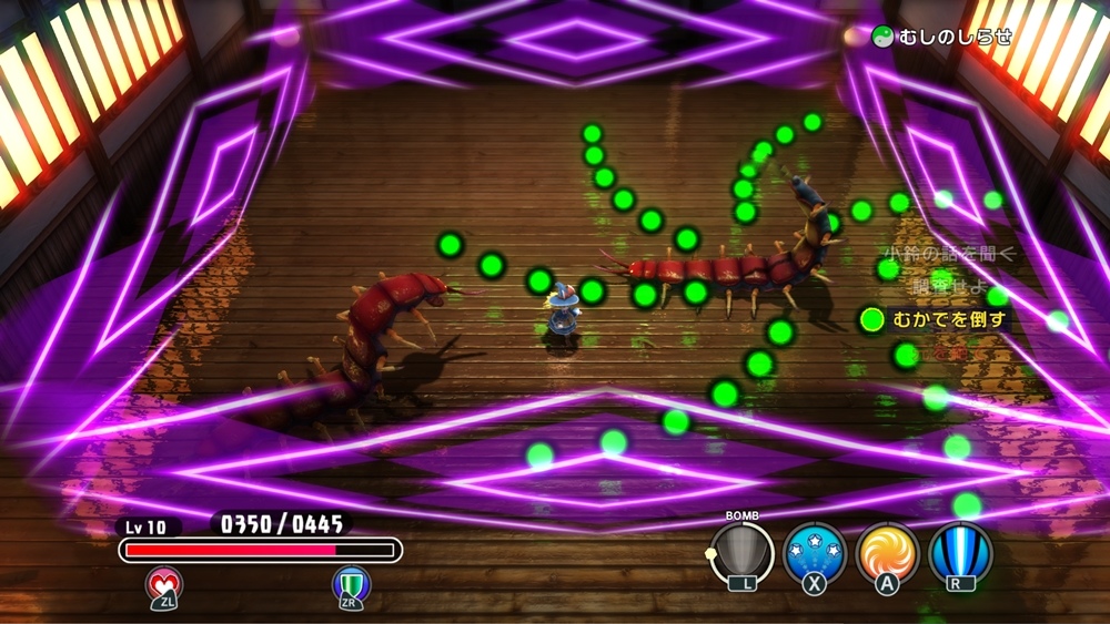 用衝刺或跳躍躲開暴風般襲來的彈幕,用超華麗的攻擊將敵人一掃而空的爽快動作遊戲。藉由護符使出遠距離攻擊等「技能」,運用能給予巨大傷害以翻轉戰況的「符卡」,與釋放大量彈幕的強敵一決勝負吧!