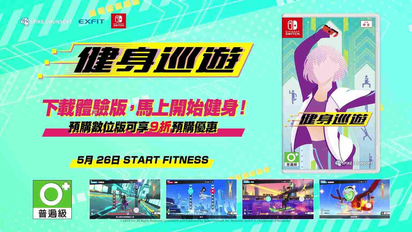 Spike Chunsoft Co., Ltd.宣布,預定於 2023 年 5 月 26 日在 Nintendo Switch 平台上推出的運動健身遊戲《健身巡遊》中文版,於今(13)日起在Nintendo eShop開放玩家下載試玩體驗版。超值的預購活動也將於同日開始,在發售前預購中文數位版《健身巡遊》即可享九折優惠價。