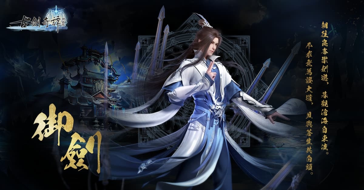 「御劍」行為方正,以降妖除魔、捍衛正道為己任。在技法上,有著近戰物理輸出,憑手中長劍和精妙的劍招精準出擊的「飛星篇」,以及將劍氣化為漫天飛劍,在敵人未近身時搶先擊殺的遠程法攻專精「神虹訣」。