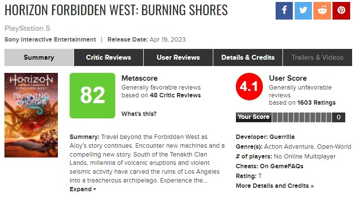 Guerrilla Games 為《地平線:西域禁地》打造的 DLC 擴充內容《炙炎海岸》已在上週正式推出,雖然在媒體間獲得不錯評價,但玩家卻因部分內容描繪方式而湧入了 Metacritic 網站進行所謂的「負評轟炸」,而網站管理團隊如今出面承諾將實施「更加嚴格的控管措施」。