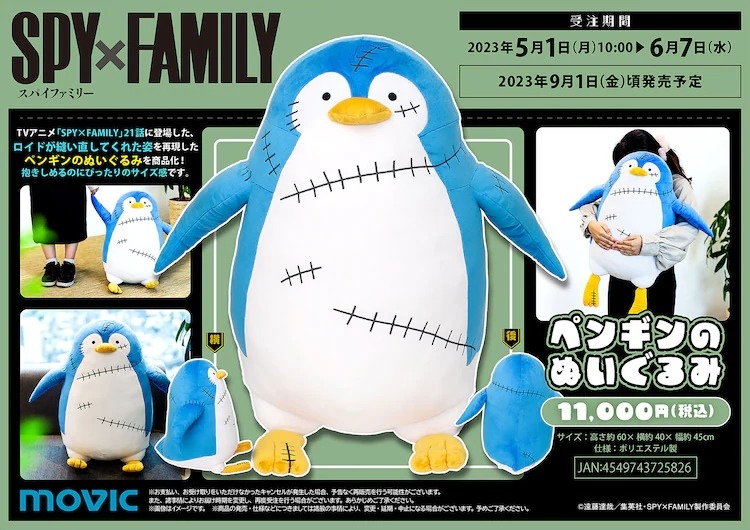 出自動畫《SPYxFAMILY 間諜家家酒》,洛伊德送給安妮亞的企鵝玩偶實際商品化,以預約生產方式販售。
