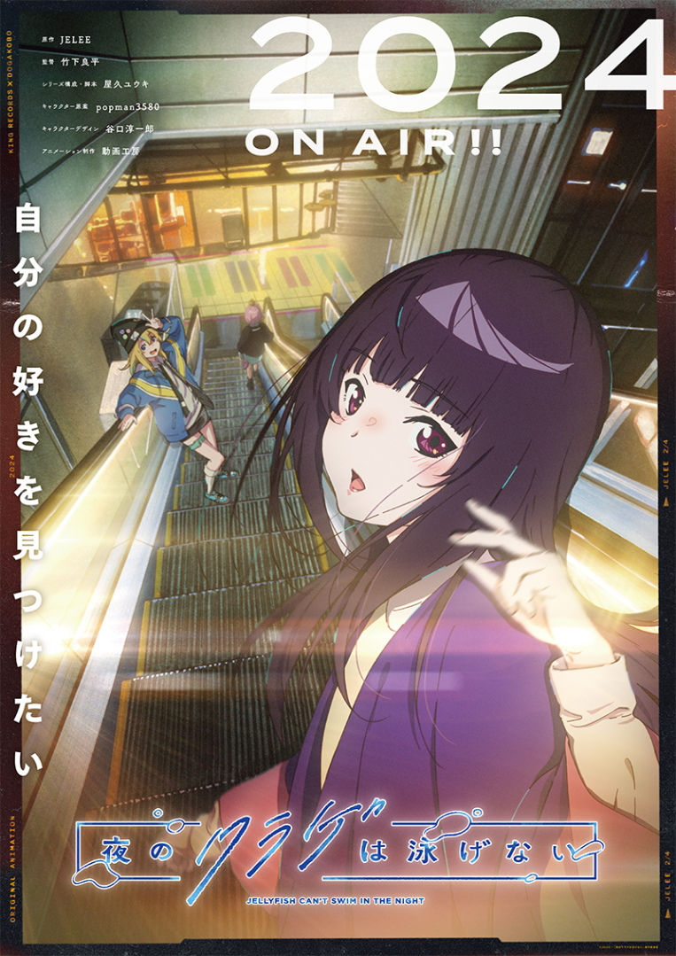 動畫工房宣布預計在 2024 年內推出的原創動畫《夜晚的水母不會游泳》(夜のクラゲは泳げない),今(12)日公開第二彈概念視覺圖與影片。