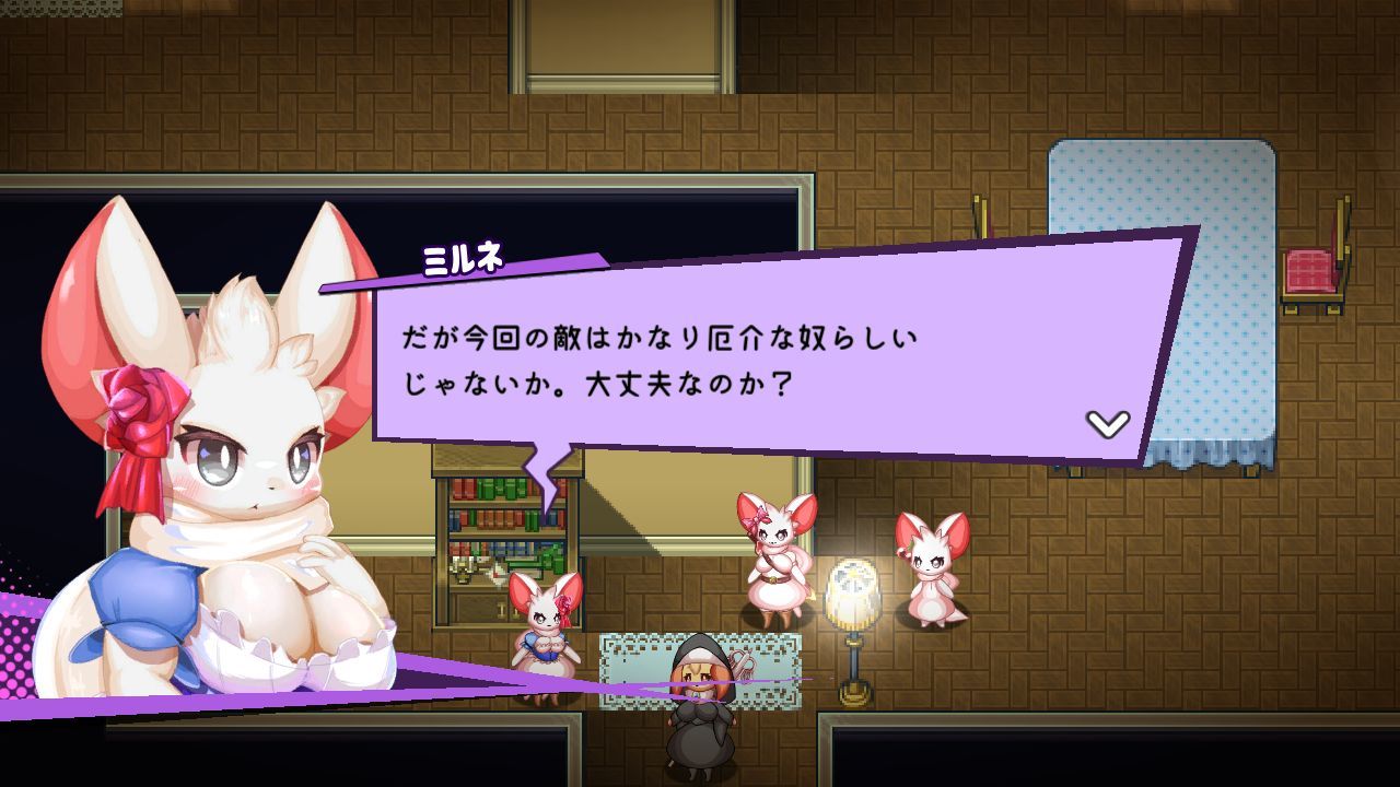 《WhiteClothes》為一款以獸人們居住的世界作為舞台的指令式 RPG 遊戲。玩家將操縱妹妹被魔王抓走的女主角「Mirune(ミルネ)」,與夥伴一起一邊挑戰迷宮強敵一邊推進故事討伐魔王並救出妹妹。遊戲畫風乍看之下雖然非常可愛,不過玩起來卻頗有難度,玩家必須慎重思考對策,才能在對戰中獲得勝利打敗敵人。