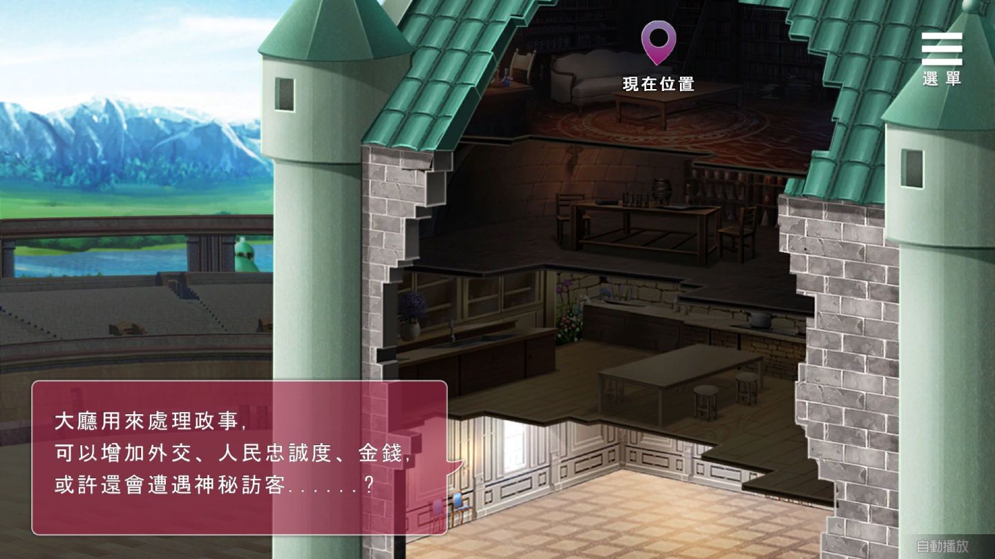 玩法部份分為國家狀態與莉絲相關屬性,每過五天可以解決一次政事,政事會影響國家數值。透過閒晃能在城堡內鍛練身體。外出時可前往廣場接收任務、或是外出探索取得材料觸發各項事件。
