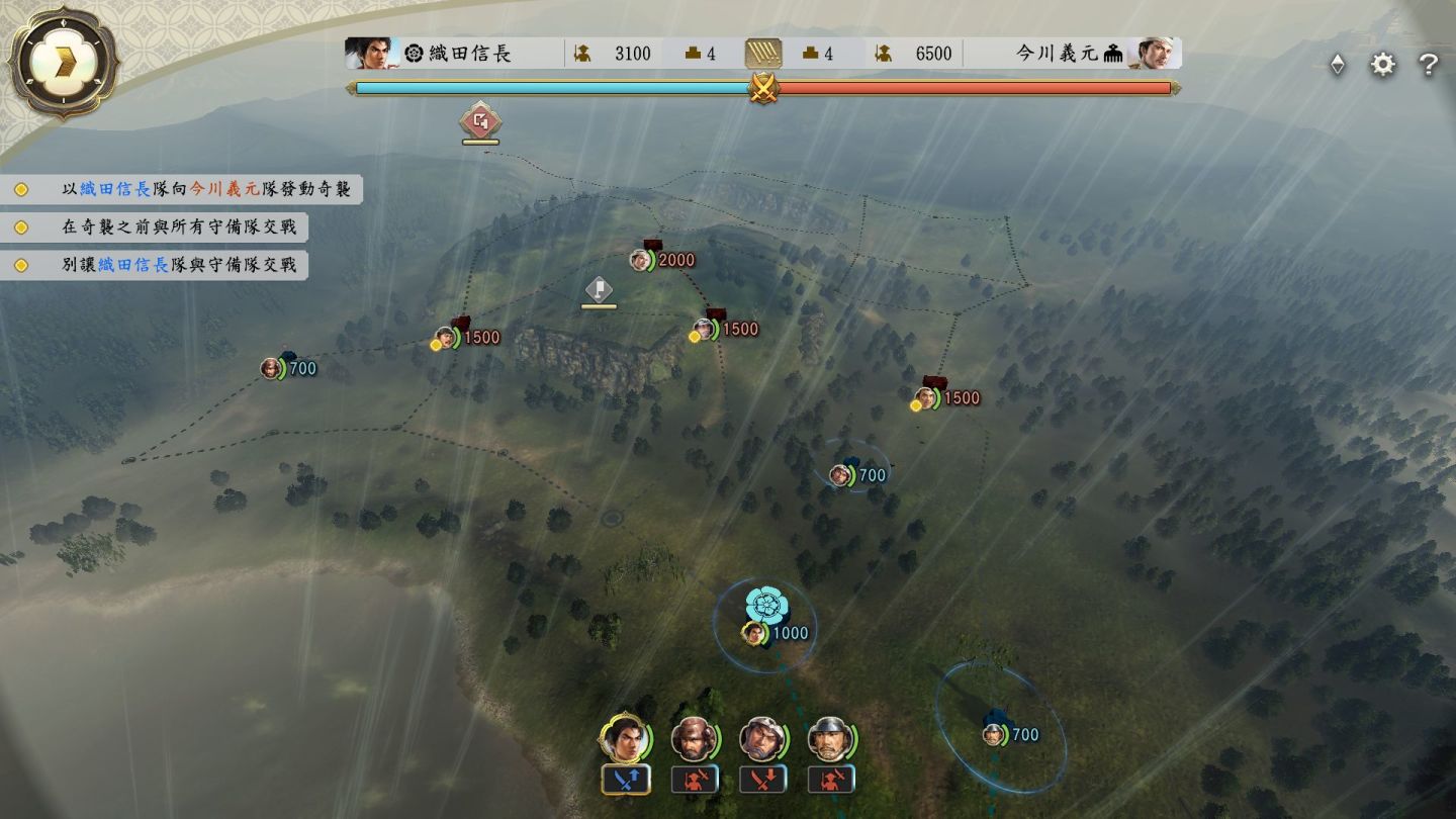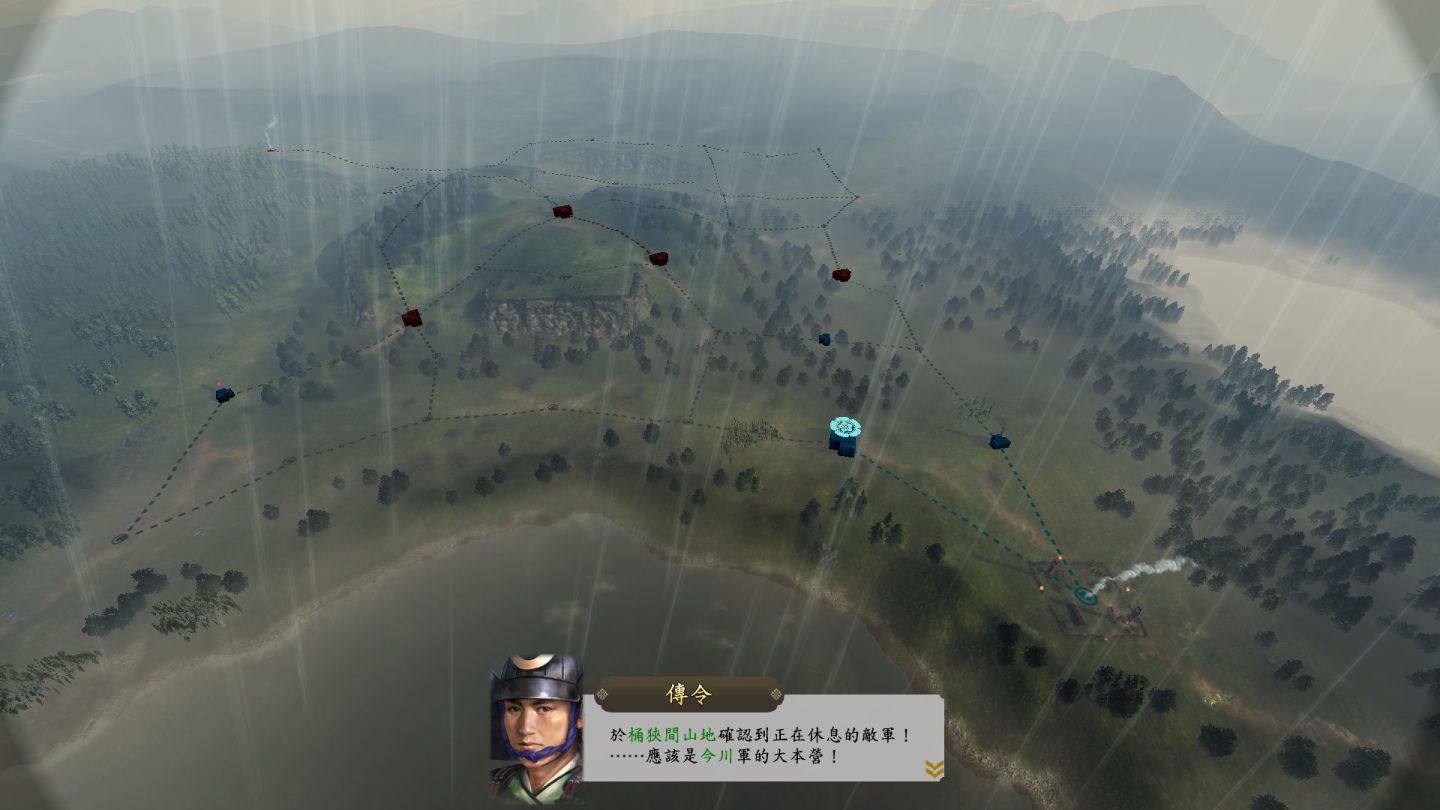 「桶狹間之戰」是尾張的小勢力織田信長對有著「東海道第一弓取」之稱的大勢力今川義元,展開奇襲並獲得勝利的歷史著名會戰。織田信長以戰前的大雨及傳令兵的報告決定奇襲本陣,在不被今川軍發現下率領軍隊,達成各種任務朝義元所在的本陣挺進。