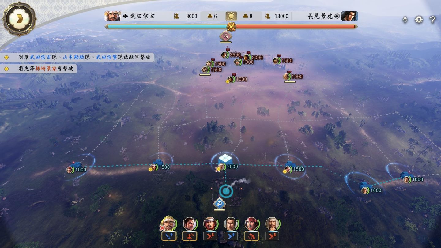 另一方面,設定成防衛據點的城因為需要準備攻城戰,出陣能力會相對下降。在戰線最前端,哪裡要防守或是要從哪邊進攻,將考驗仰賴玩家的觀察力及戰略能力。