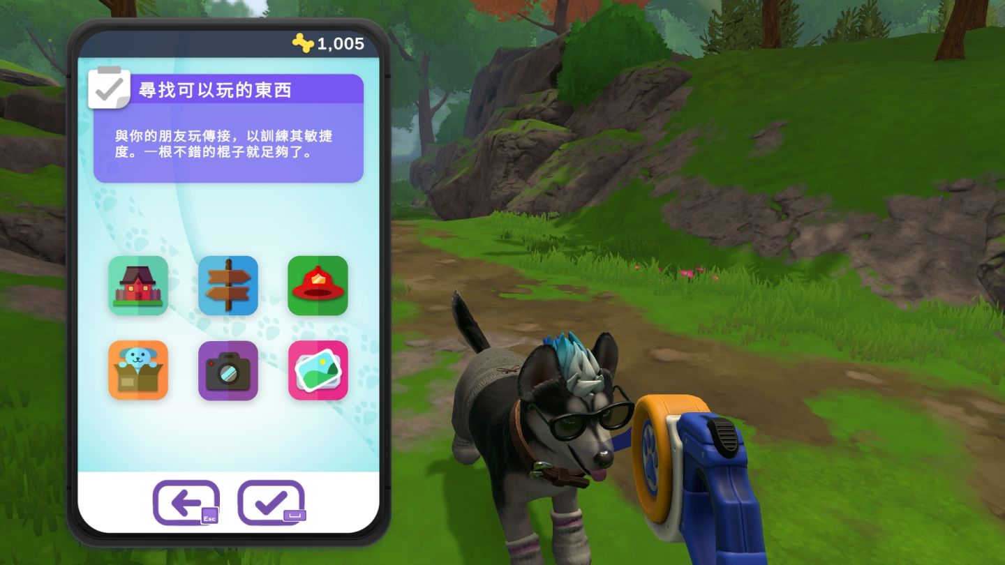 玩家毋須擔心在島嶼上迷路,遊戲初始會給你一部功能齊全的智能電話,只要按下有小屋圖案的標誌,就能迅速回到家中!您還可以使用電話查看每隻小狗的屬性、狀態、工作機會、主要任務等,之後會為各位介紹更多詳細功能,切勿不要錯過喔!